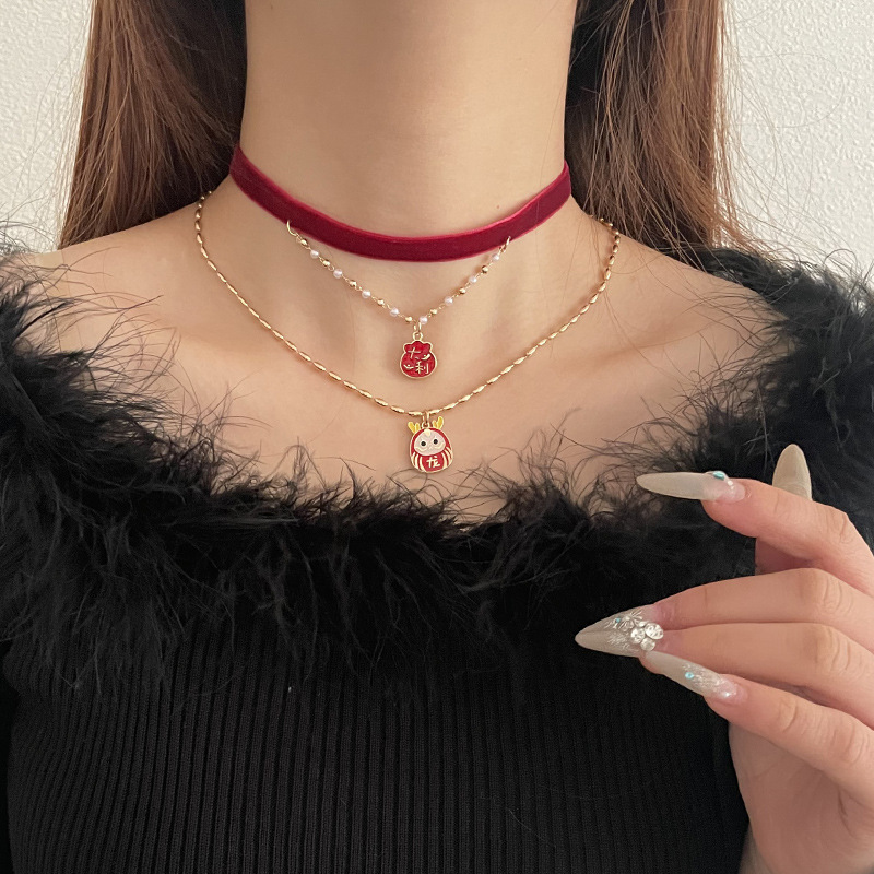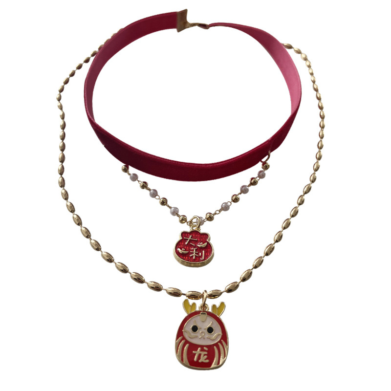 Product information:Color: Dragon double-layer necklaceApplicable people: womenPendant material: AlloyChain style: clavicle chainMaterial: AlloyModeling: animal/Zodiac, letter/number/textPopular elements: DragonStyle: New Chinese style