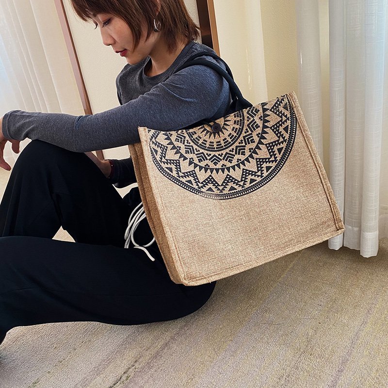 Product Information:Lining texture: polyesterStyle: women's shoulder bagFabric texture: hempPattern: PrintingColour: BlackSize Information:Size: 17*35*30cmPacking listOne-shoulder shopping bag*1