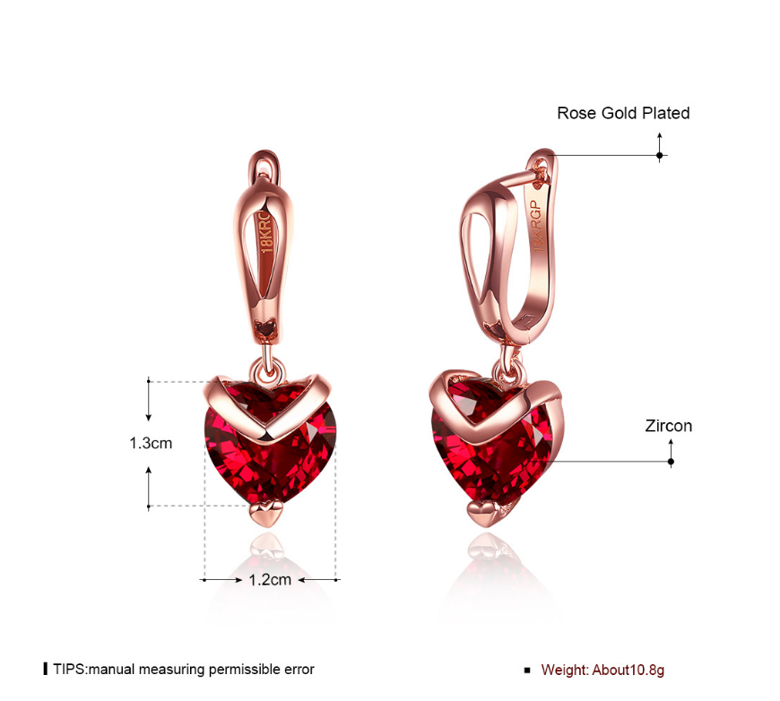 Heart-shaped zircon earrings Rose gold hypoallergenic earrings