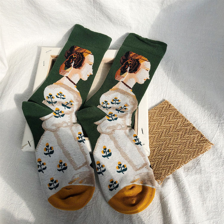 Product information:Color: Geisha socks, asymmetric avatar, vintage flowers Size: average size Fabric name: Chemical Fiber Applicable gender: neutral/both men and women Style: Simple