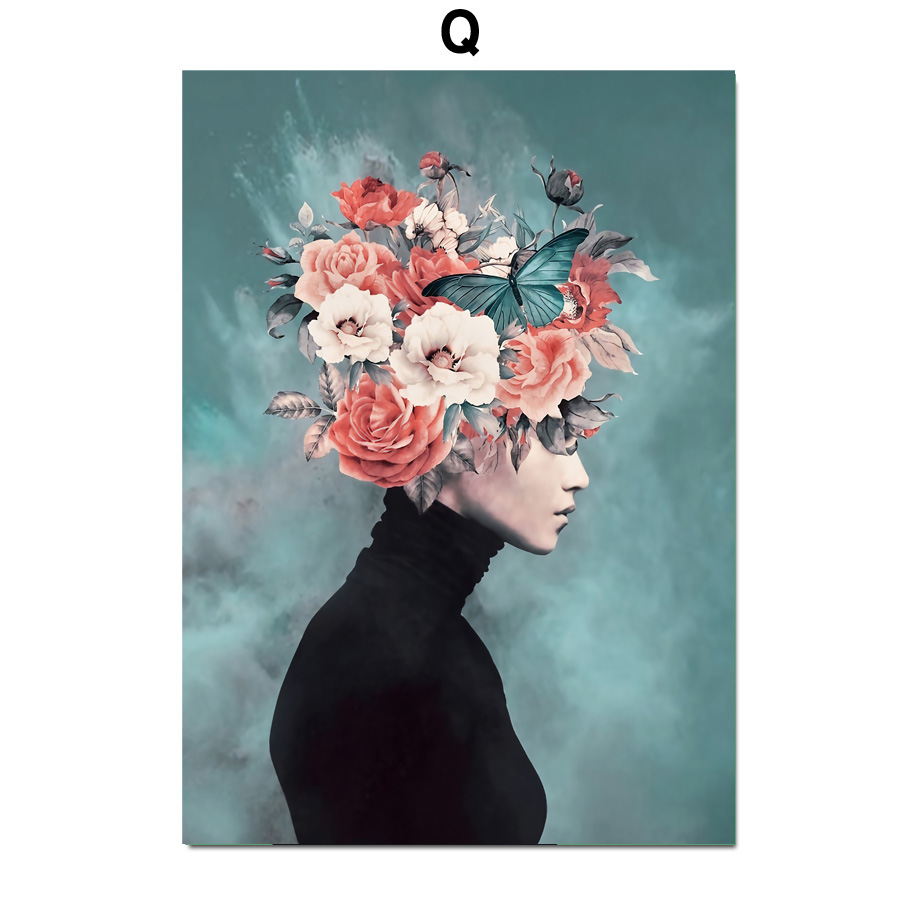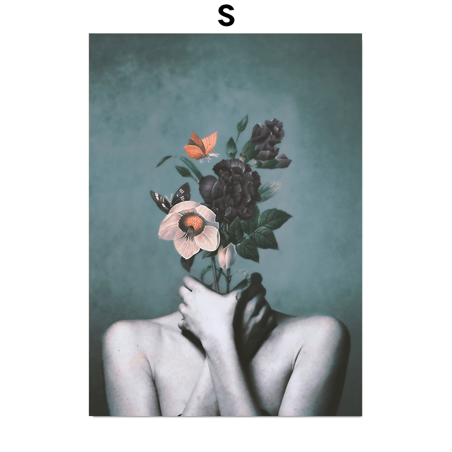 Bird Flower Girl Abstract Illustration Wall Art Canvas Painting Nordic Poster