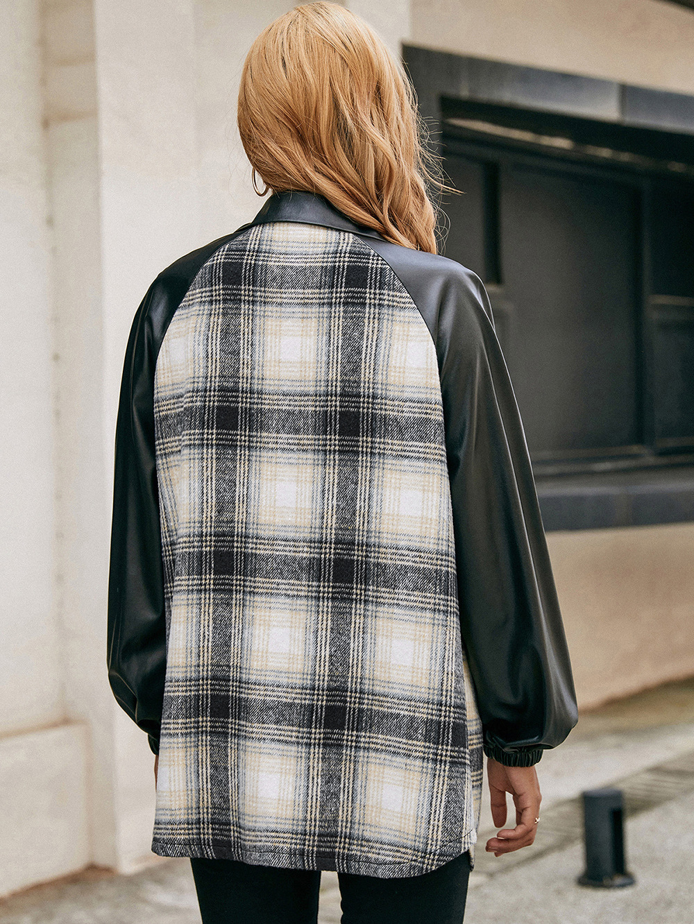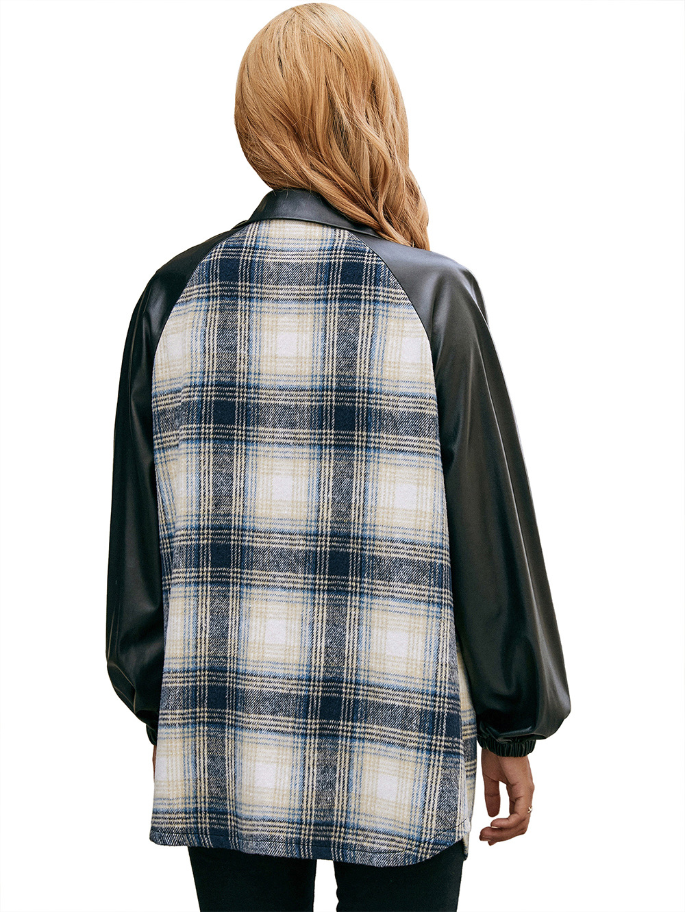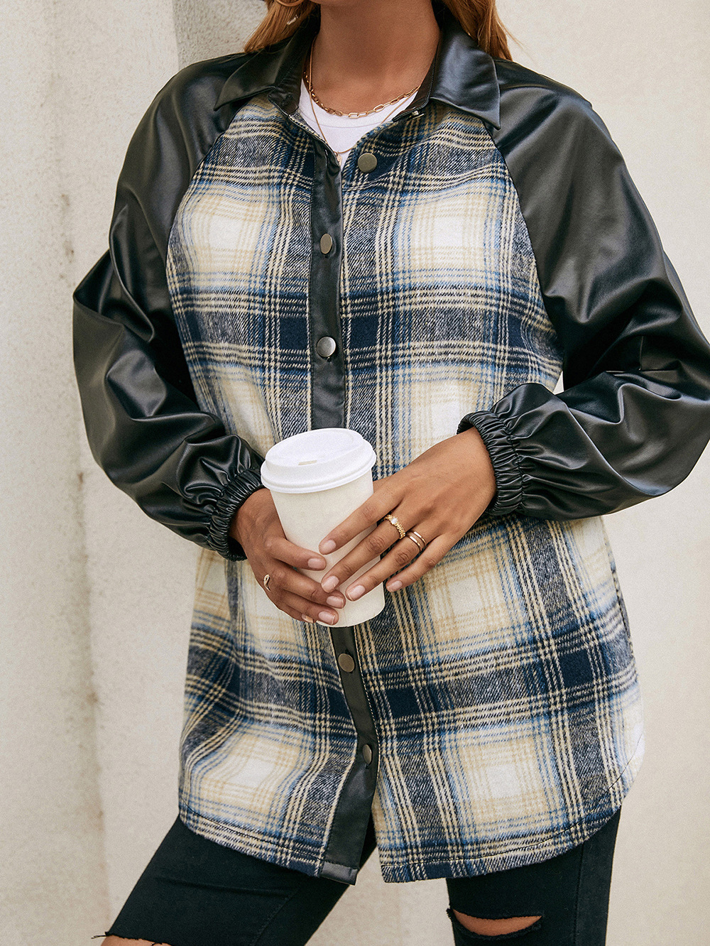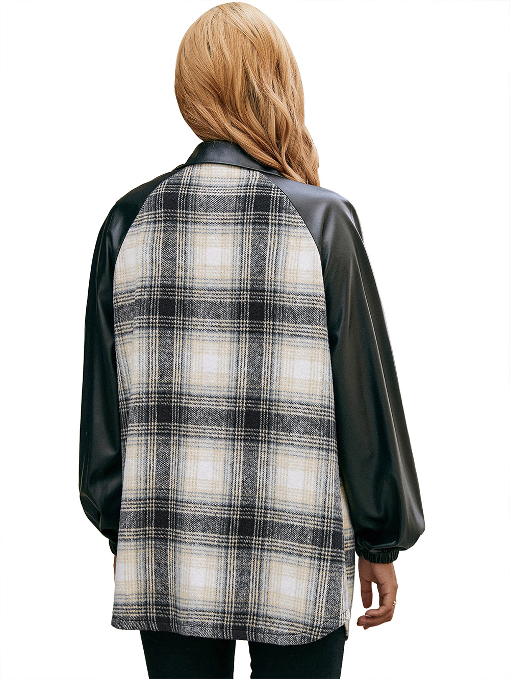 Long Sleeve Loose Panel Casual Double Pocket Check Jacket