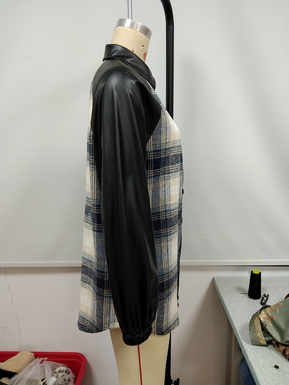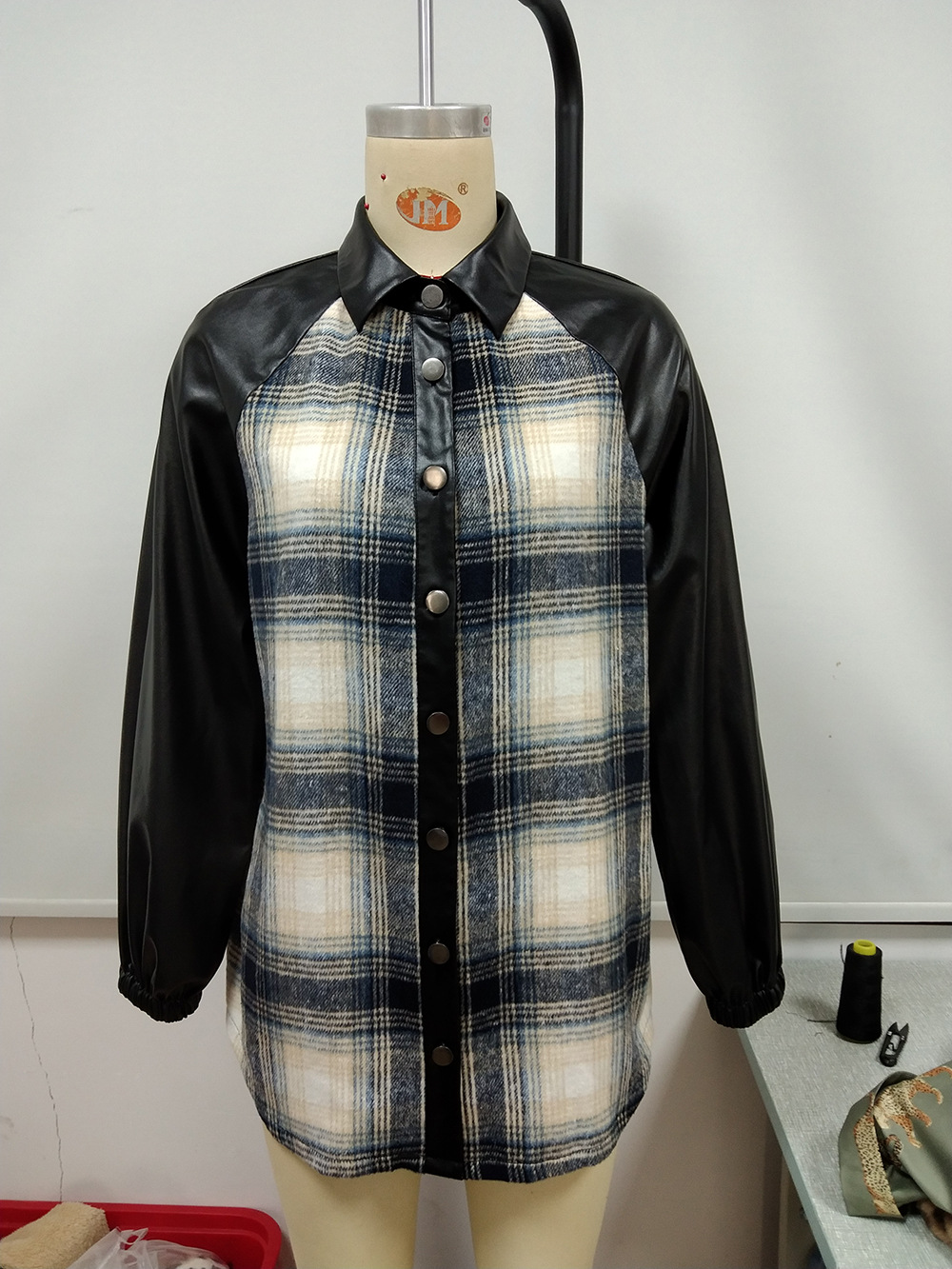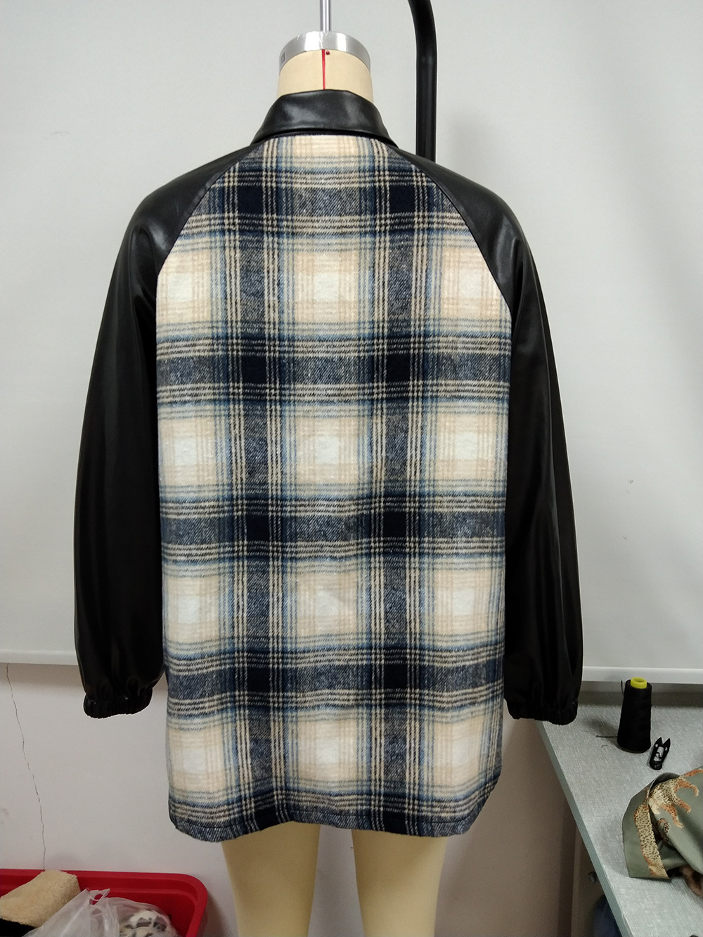 Long Sleeve Loose Panel Casual Double Pocket Check Jacket
