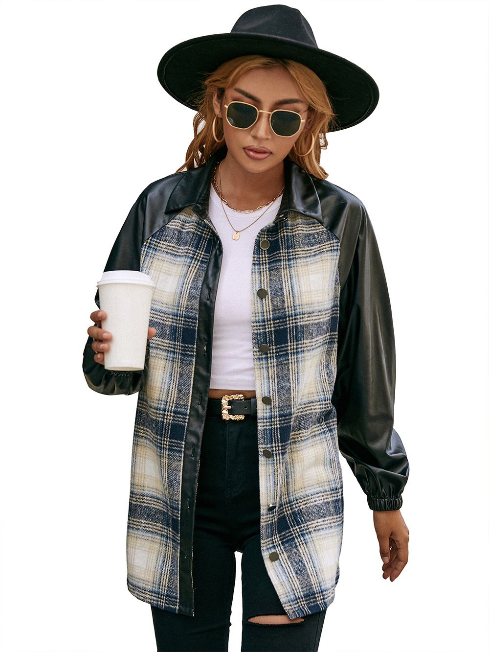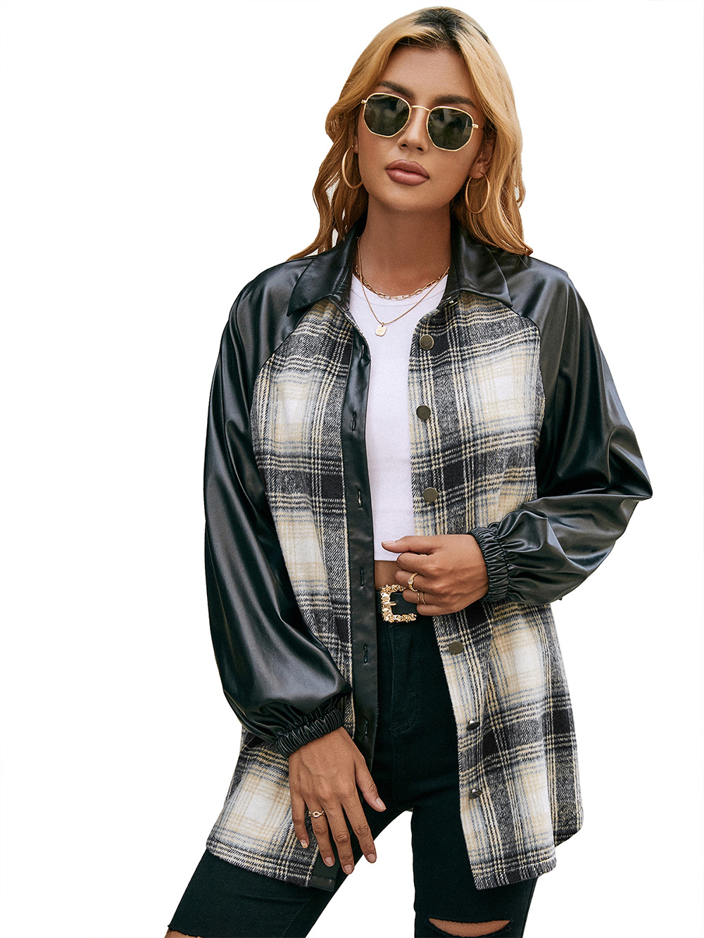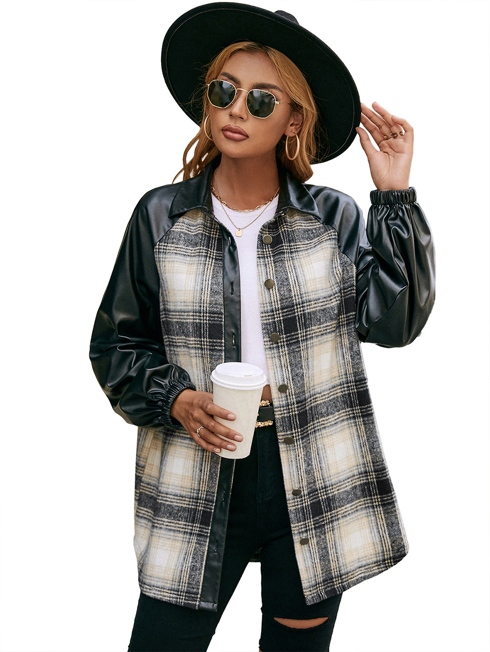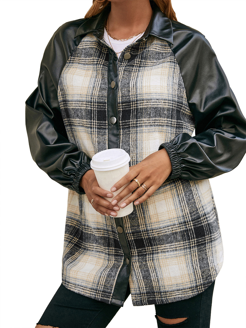 Long Sleeve Loose Panel Casual Double Pocket Check Jacket