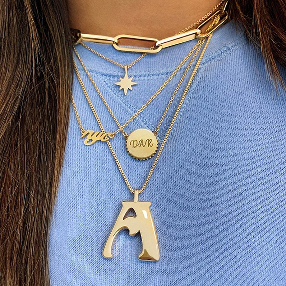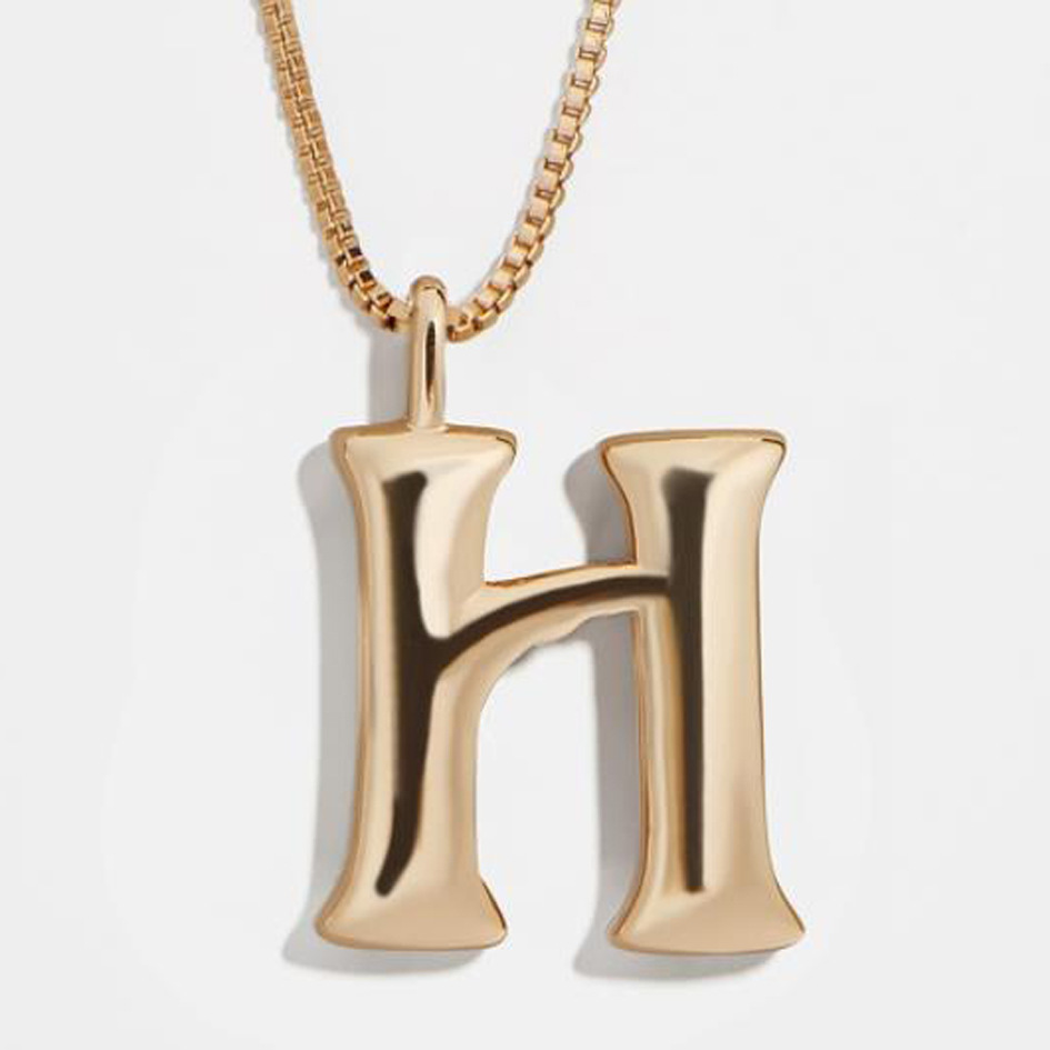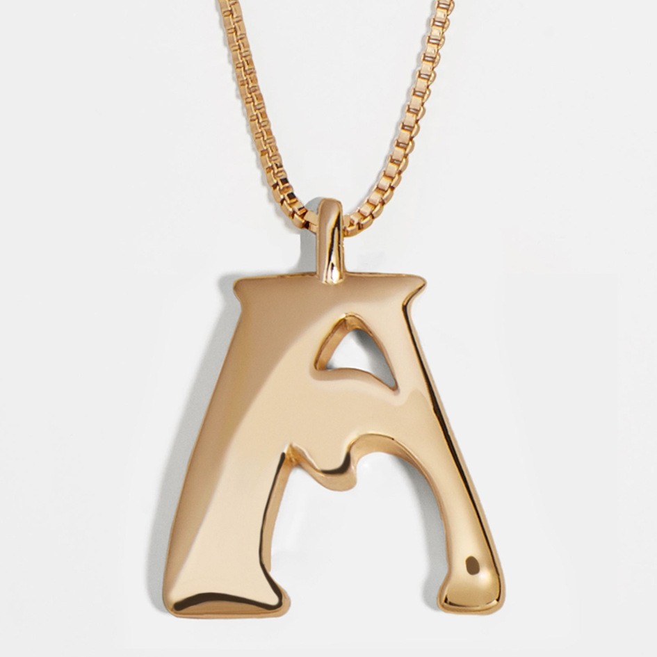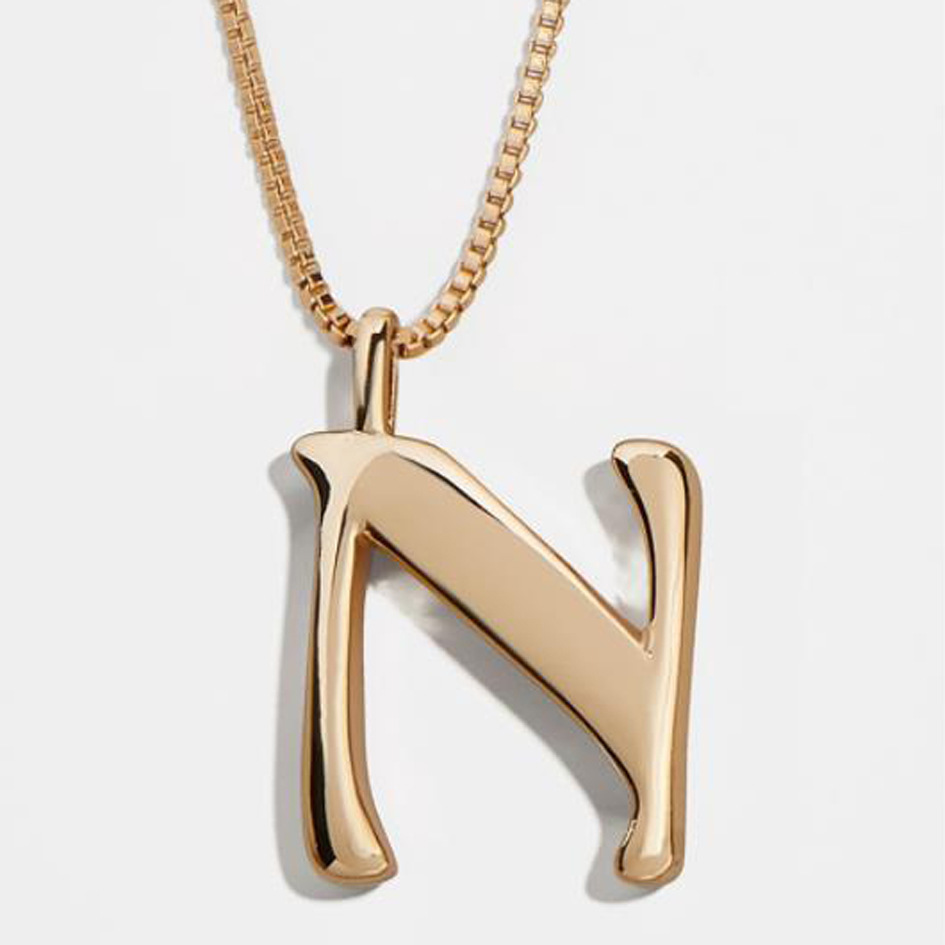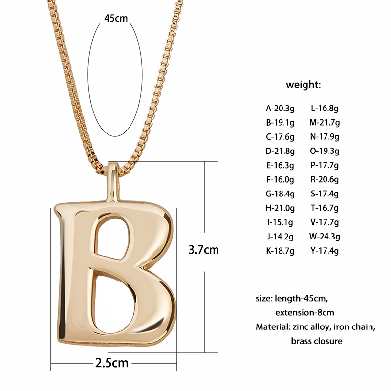 Material: zinc alloy, copper, ironSize: Pendant length 3.7cm (including lifting hole), chain 45cm, extension chain 8cmPacking: ziplock bagStyle: European and AmericanShape: letters