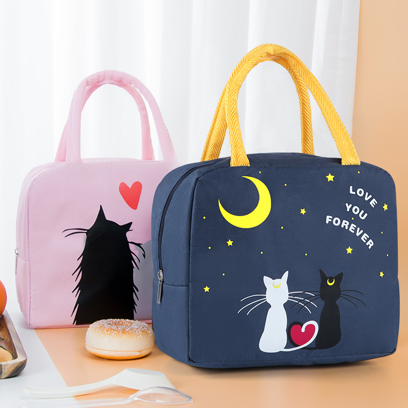 Product name: couple cat bento bagProduct material: oxford cloth aluminum foilProduct weight: about 110GProduct color: blue