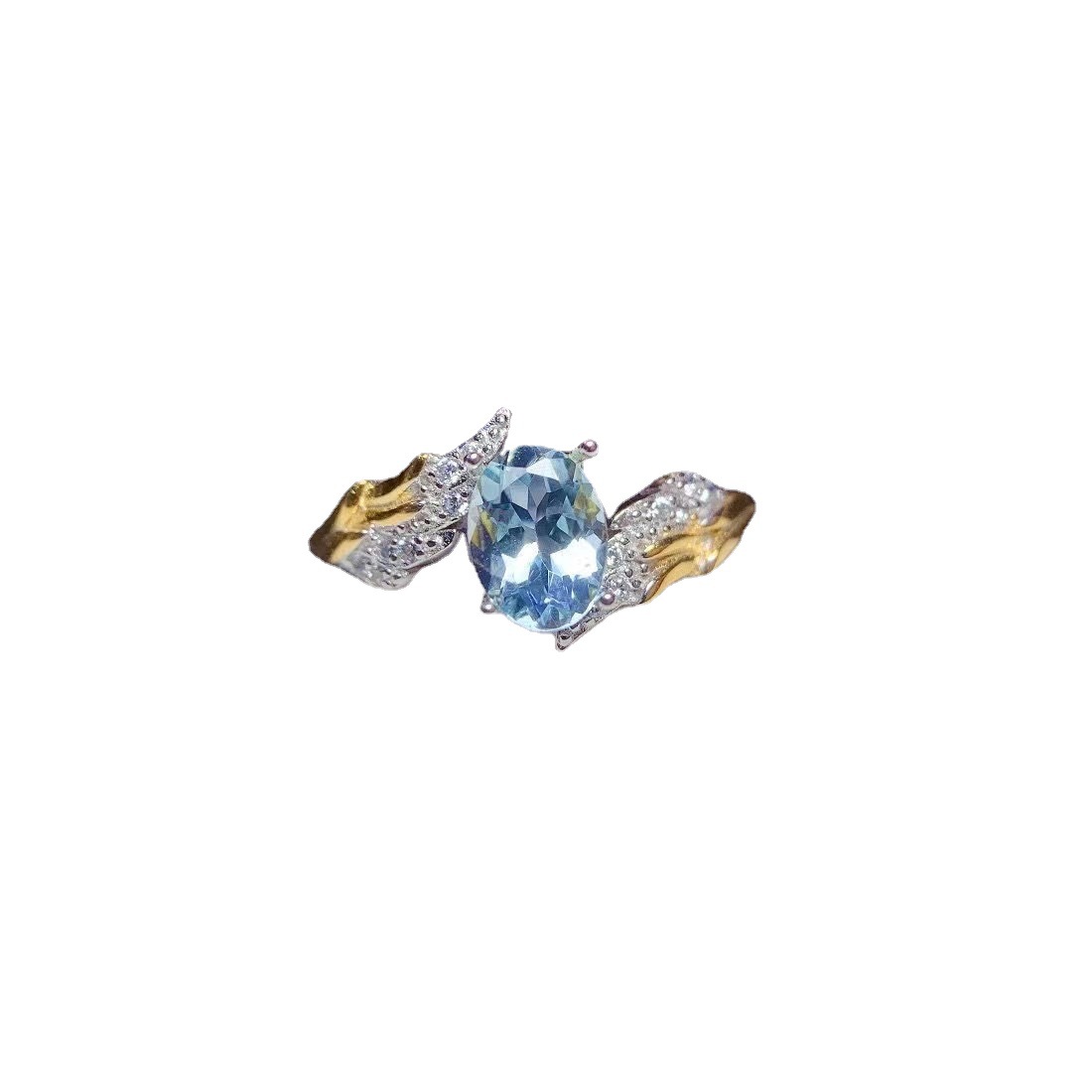 925 Silver Inlaid Natural Aquamarine Ring