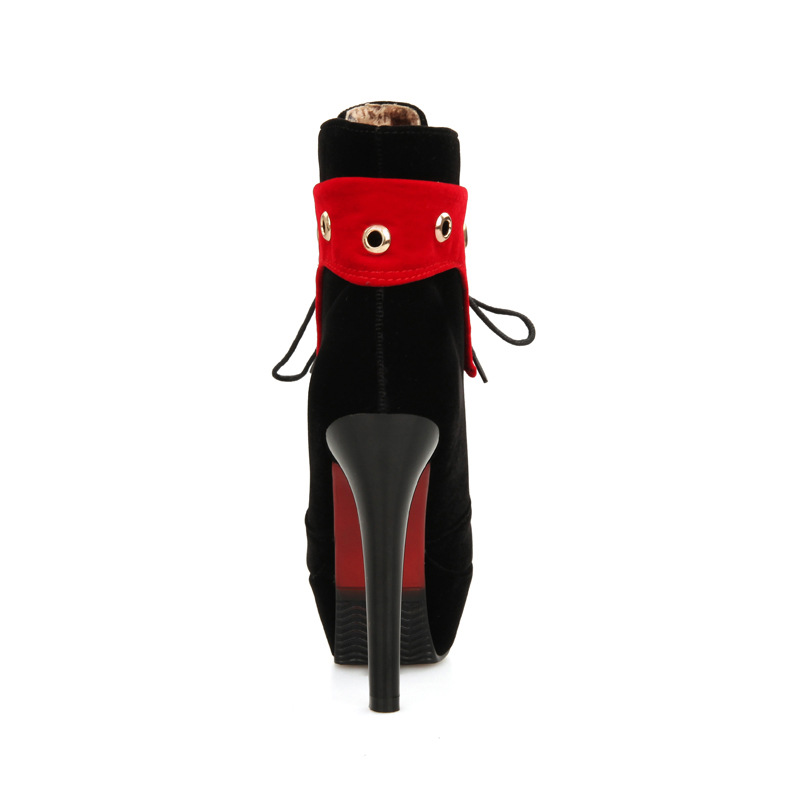 Round head waterproof platform stiletto super high heel lace ladies ankle boots