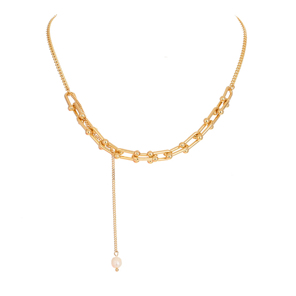 U-shaped Stitching Clavicle Chain Natural Freshwater Rice Bead Necklace