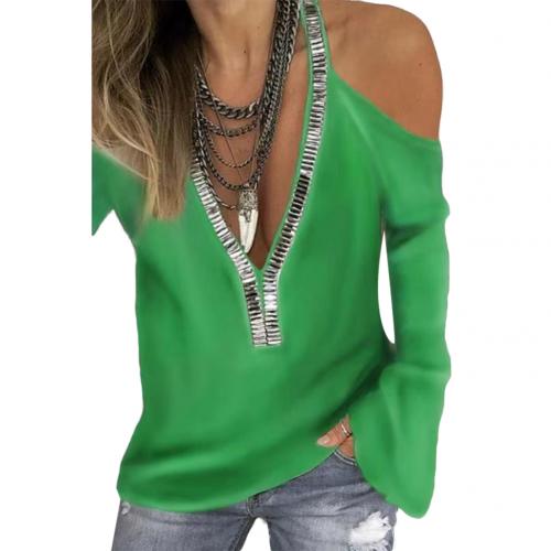 Stitching V-neck sequin long sleeve chiffon shirt