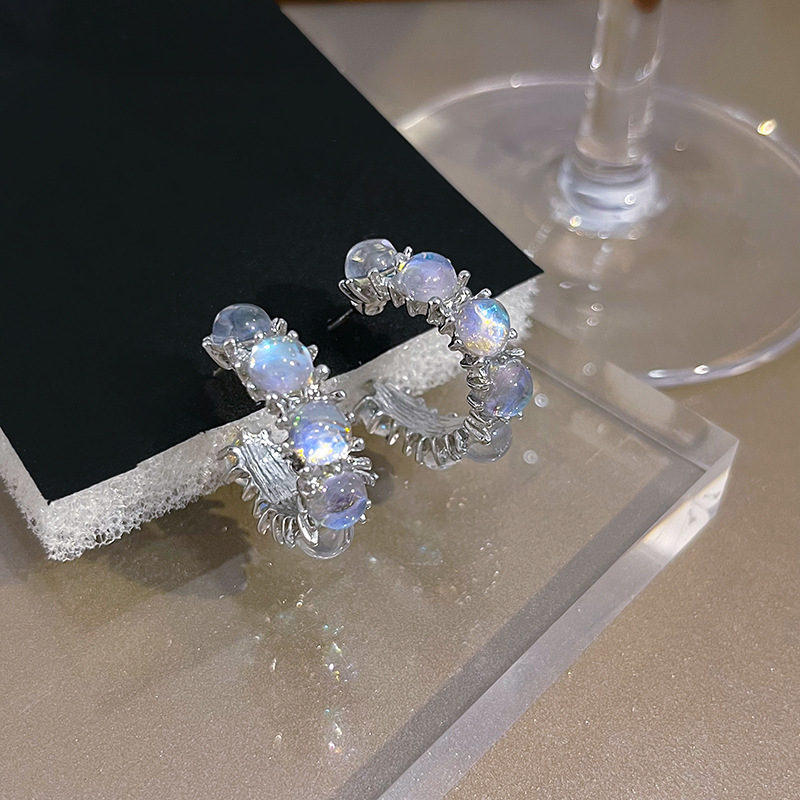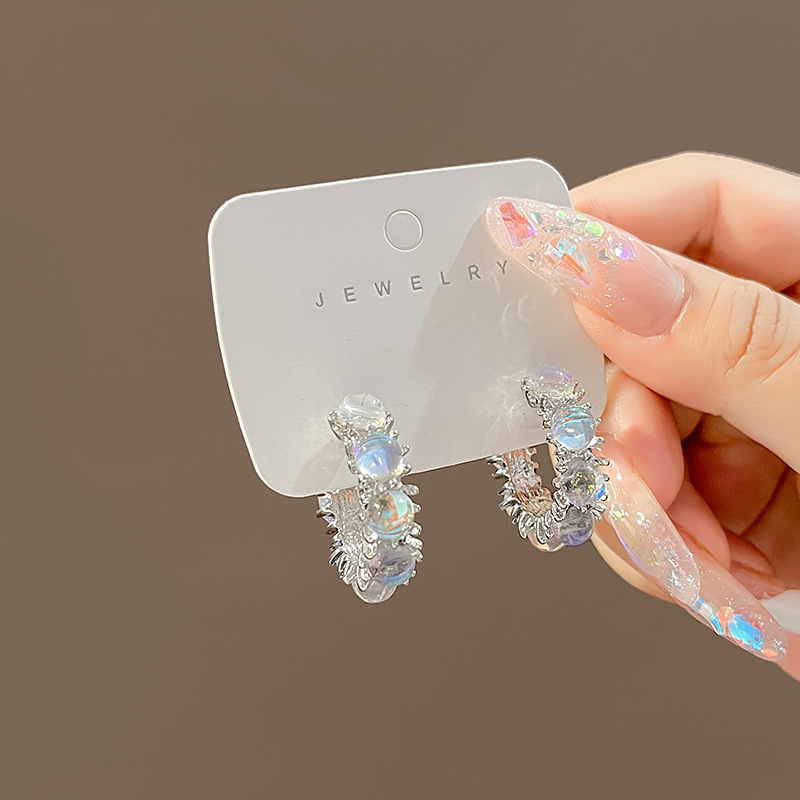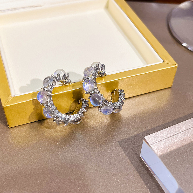 Full Rhinestone Zircon C- Shaped Circle Ear Studs