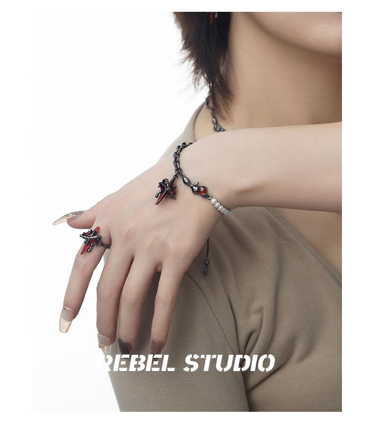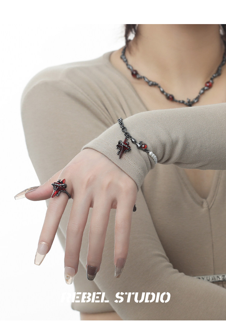 Color classification: taboo four-pointed star bracelet, bracelet ring set, bracelet ring necklace set