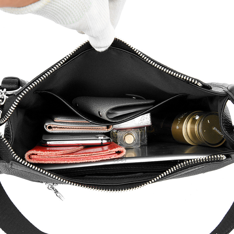 The internal structure of the bag: zipper pocket, mobile phone bag, document bag, sandwich zipper bag