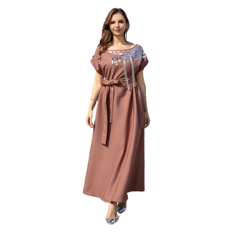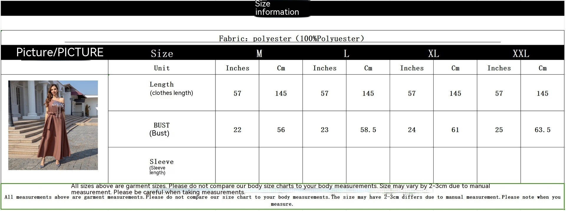 Product information: Color: Brown Main composite material: Polyester (polyester fiber) Size: M,L,XL,XXL Long Skirt: long skirt Sleeve length: long sleep Popular elements: sculpture common sense Process: embroidery/embroidery