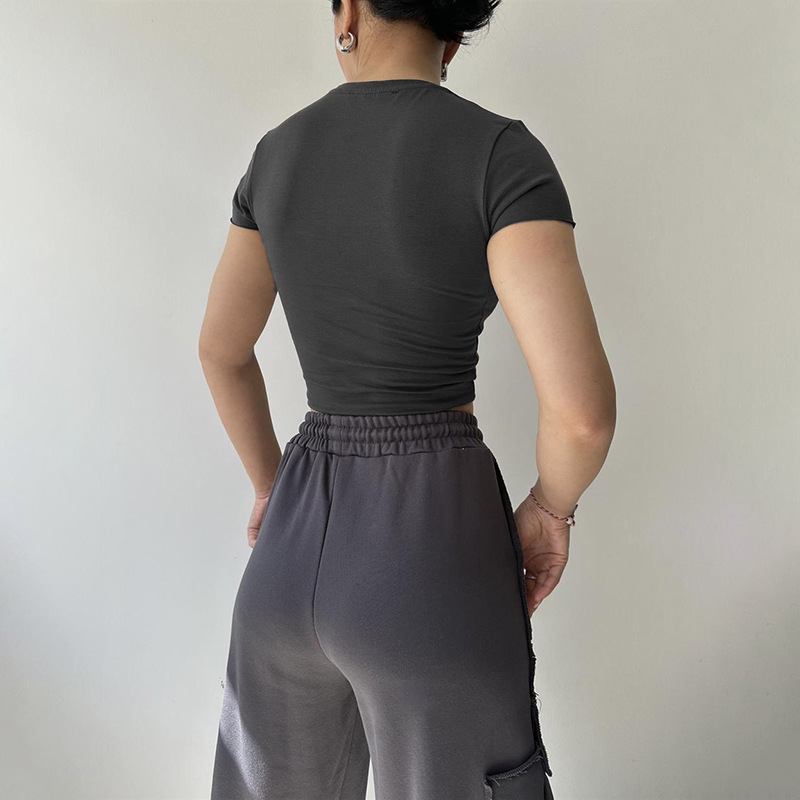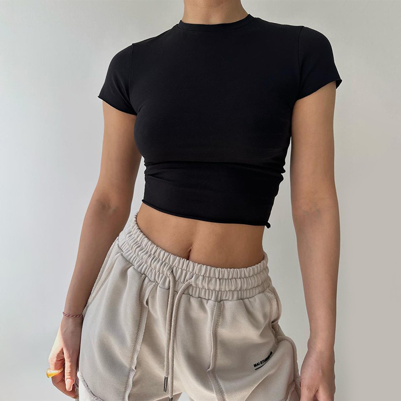 Round Neck Short Sleeve T-Shirt Versatile Casual Cropped Top