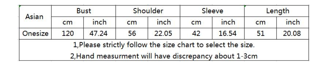 1. Asian sizes are 1 to 2 sizes smaller than European and American people. Choose the larger size if your size between two sizes. Please allow 2-3cm differences due to manual measurement.