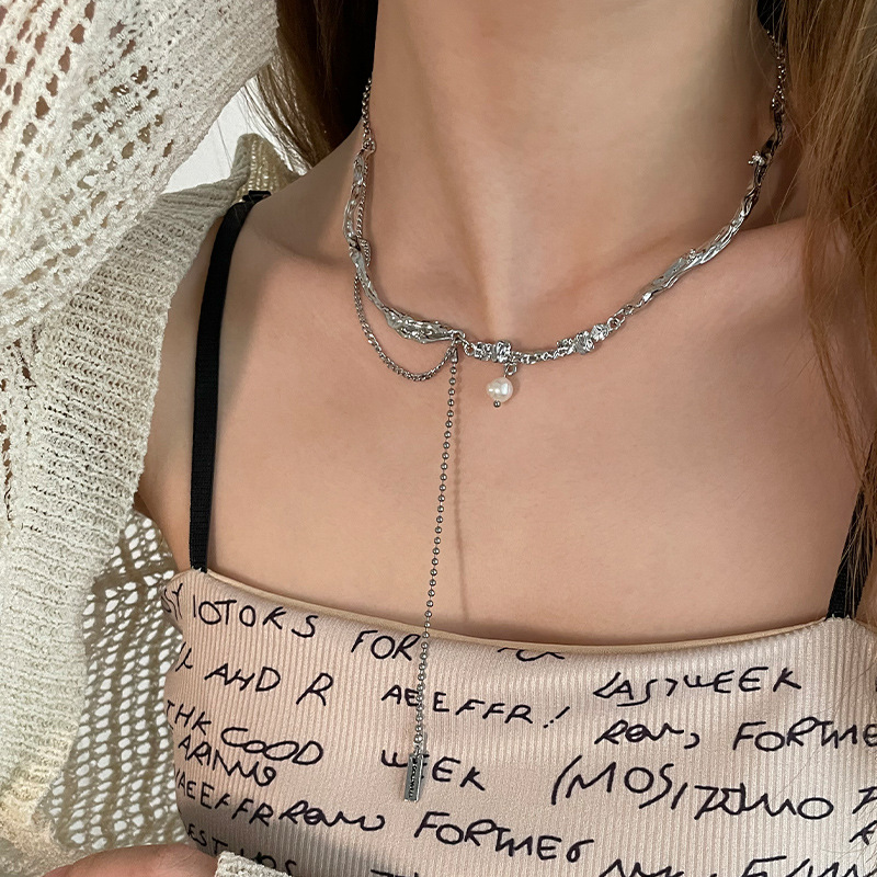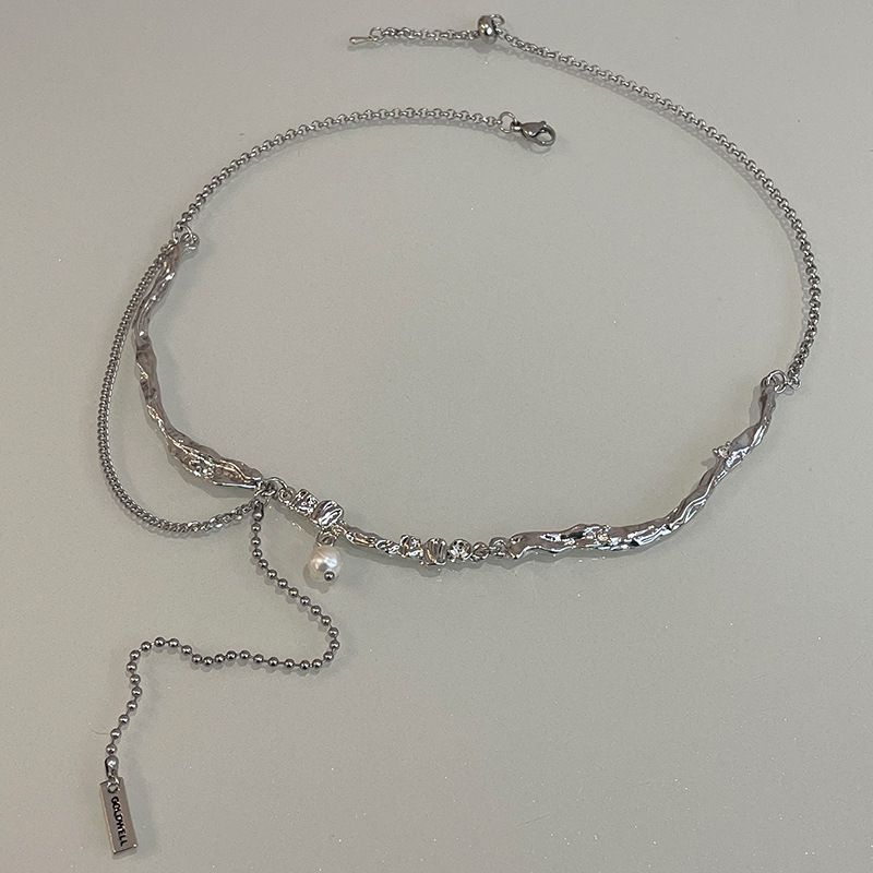 Color: irregular metal Pearl tassel necklace