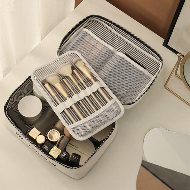 Product information:Applicable scenario: TravelColor: Black, Milky WhiteScope of Application: CosmeticsFunction: StorageMaterial: canvasStyle: ins styleShape: Cube styleSize: 25xl8x10 cm
