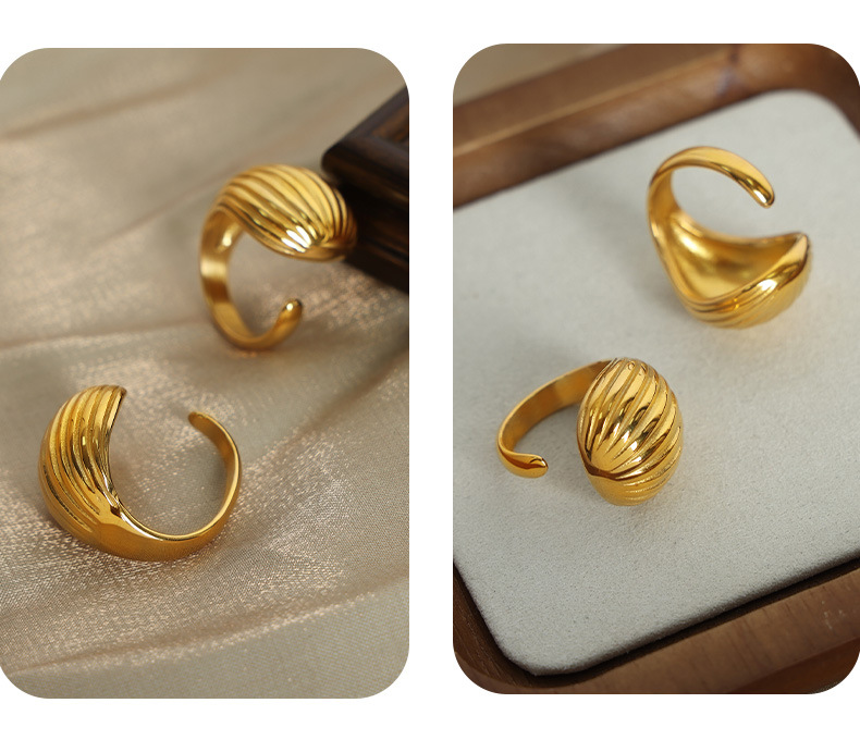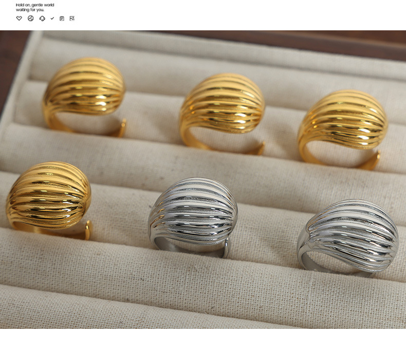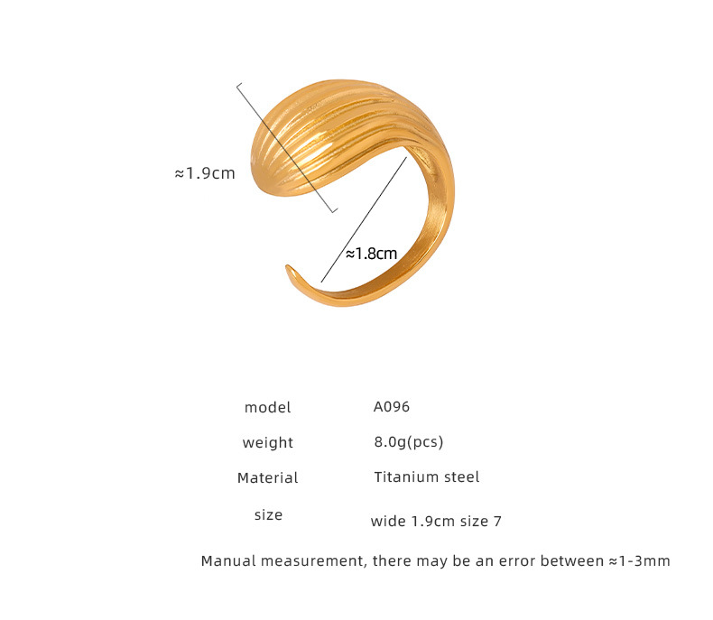 Product information:Type: open mouthTreatment Process: ElectroplatingColor: A096-steel ring, A096-gold ringApplicable people: UnisexSize: no.7Material: titanium steelShape: GeometricPopular elements: stripesStyle: cold wind