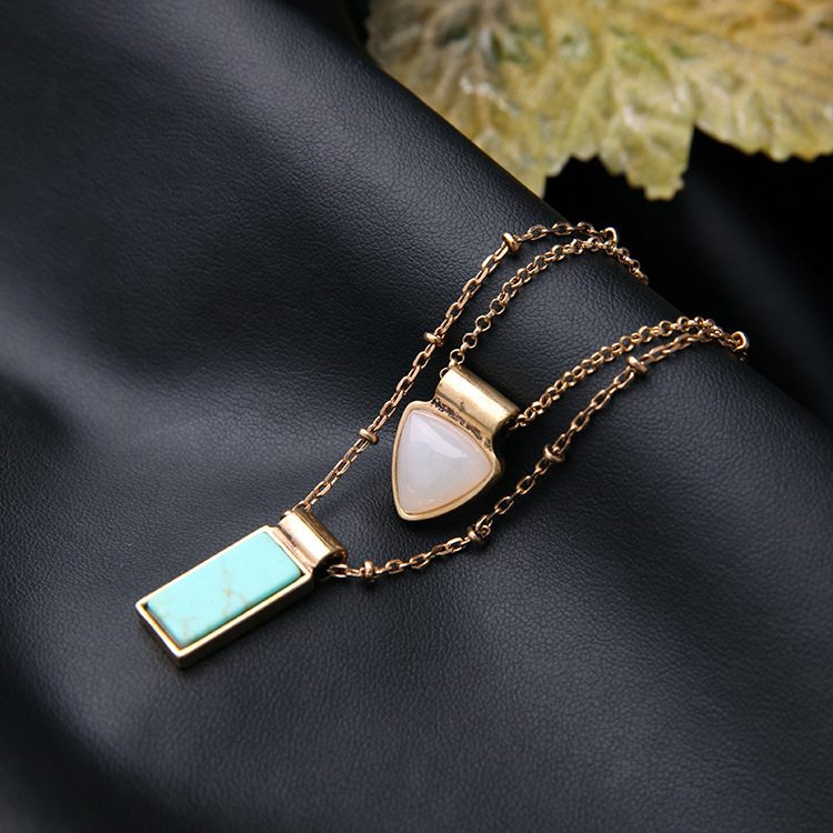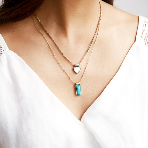 Natural stone pendant long sweater chain