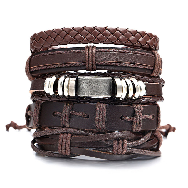 Material: two-layer cowhide + alloy + PU braidStyle: simple and stylishSize: Length 18CM, adjustable sizeTreatment process: electroplatingType: BraceletStyle: Unisex