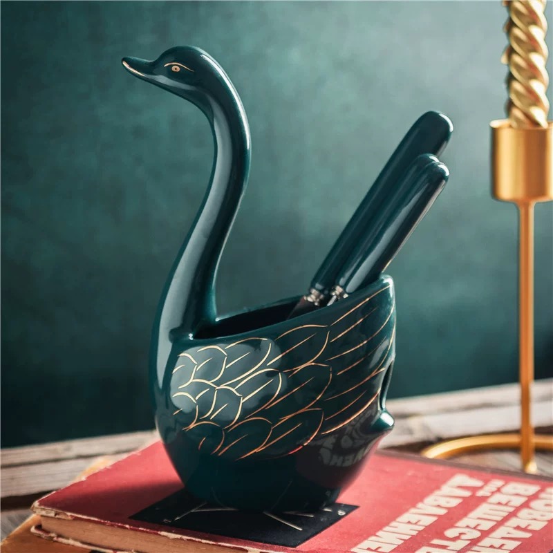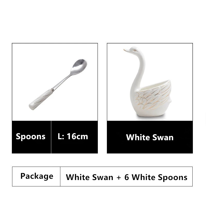 Ceramic Swan Stand Holder Fruit Forks kitchen Cutlery Cake Dessert Fork Spoon Set