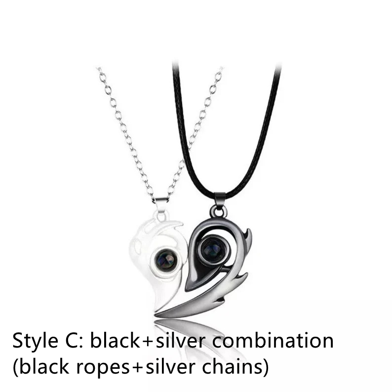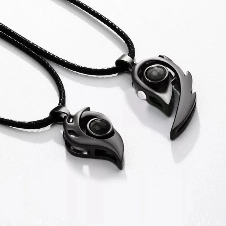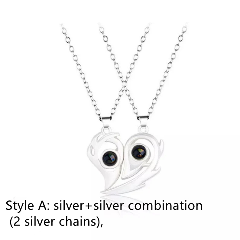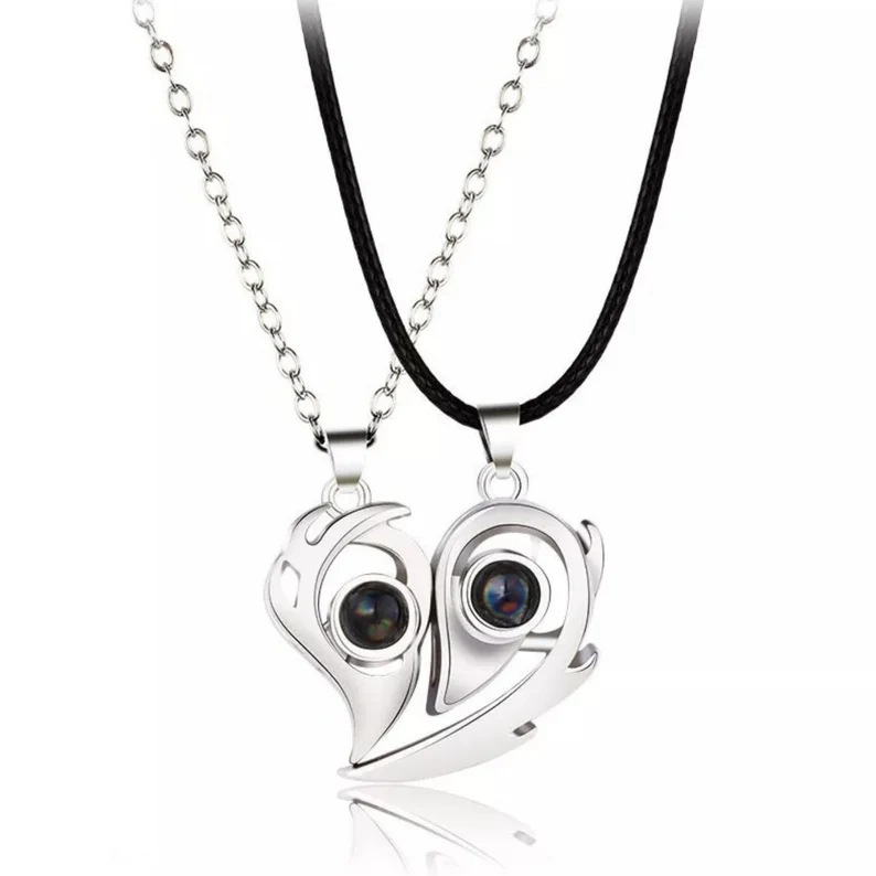 Magnets attract each other in 100 languages. I love you. Small number design. Projection necklace. Love couple pendant
