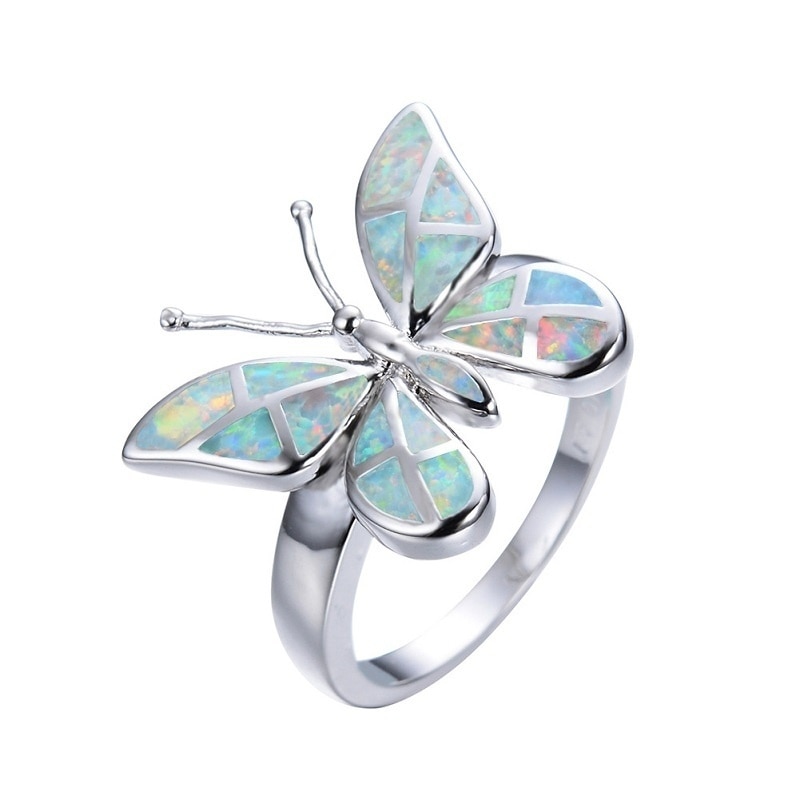 Material: AlloyModeling: butterflyPackaging: Individually packedStyle: womenMosaic material :alloy inlaid artificial gems/semi-precious stonesColor: green, blue, colorfulSize: 5, 6, 7, 8, 9, 10, 11