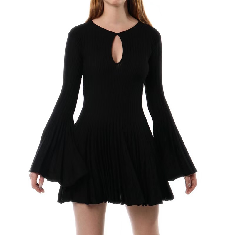 Slim Fit Waist Trimming Knitted French Horn Long Sleeve Dress