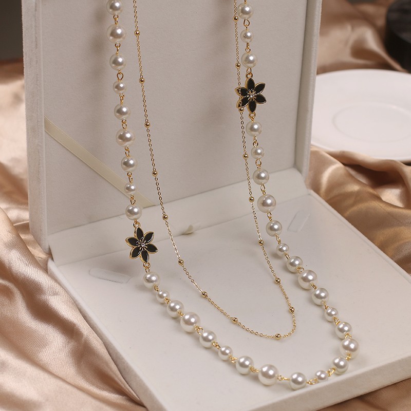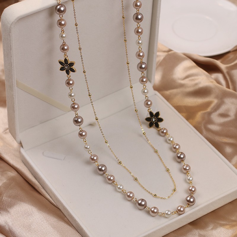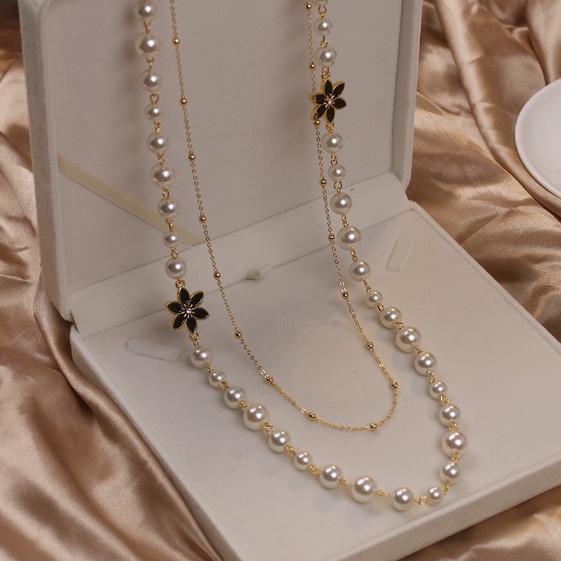 Product information:Color: white, Champagne Inlaid material: Pearl Pendant material: colored glaze Chain style: ball bead necklace Material: artificial crystal Shape: Flower Popular elements: water droplets Style: Elegant