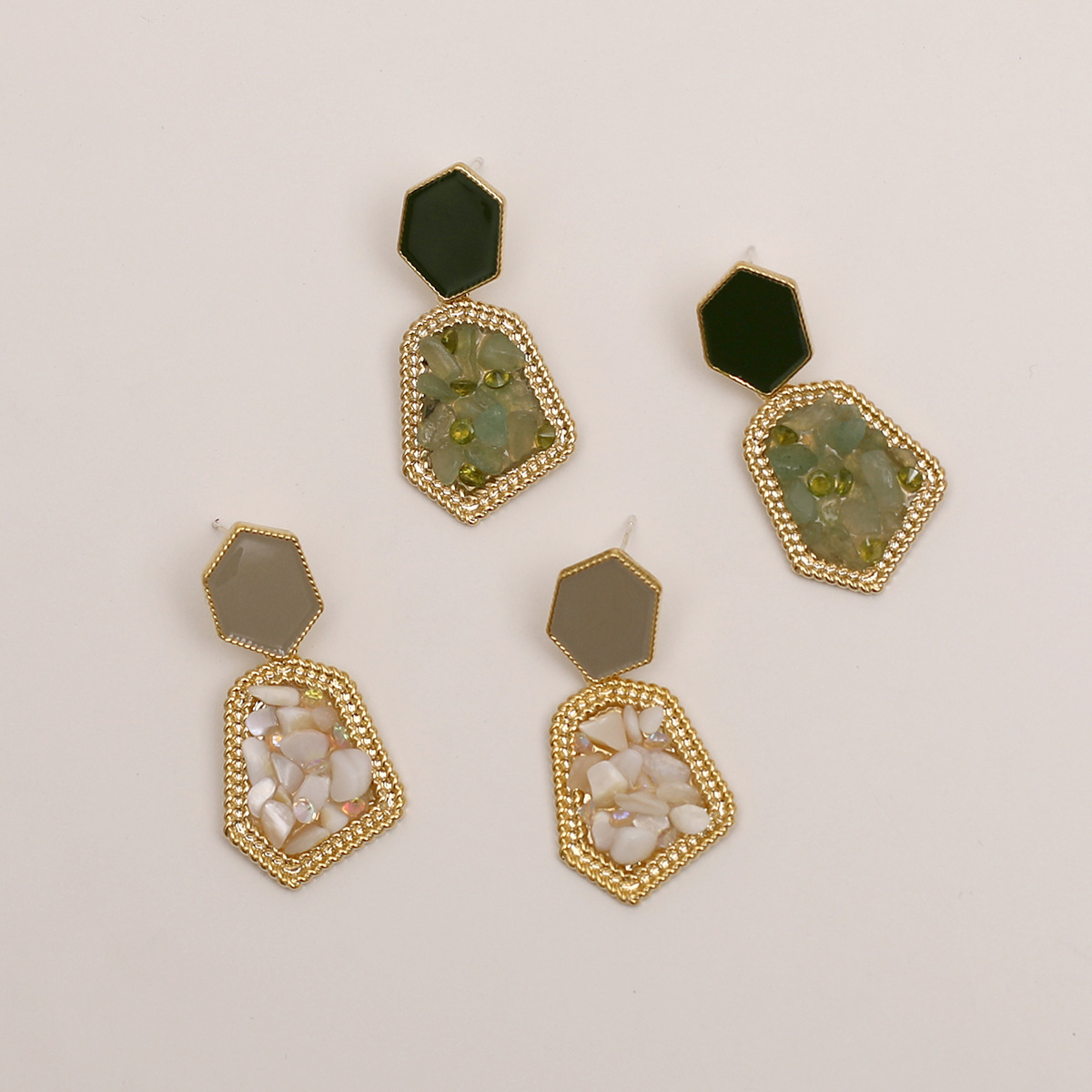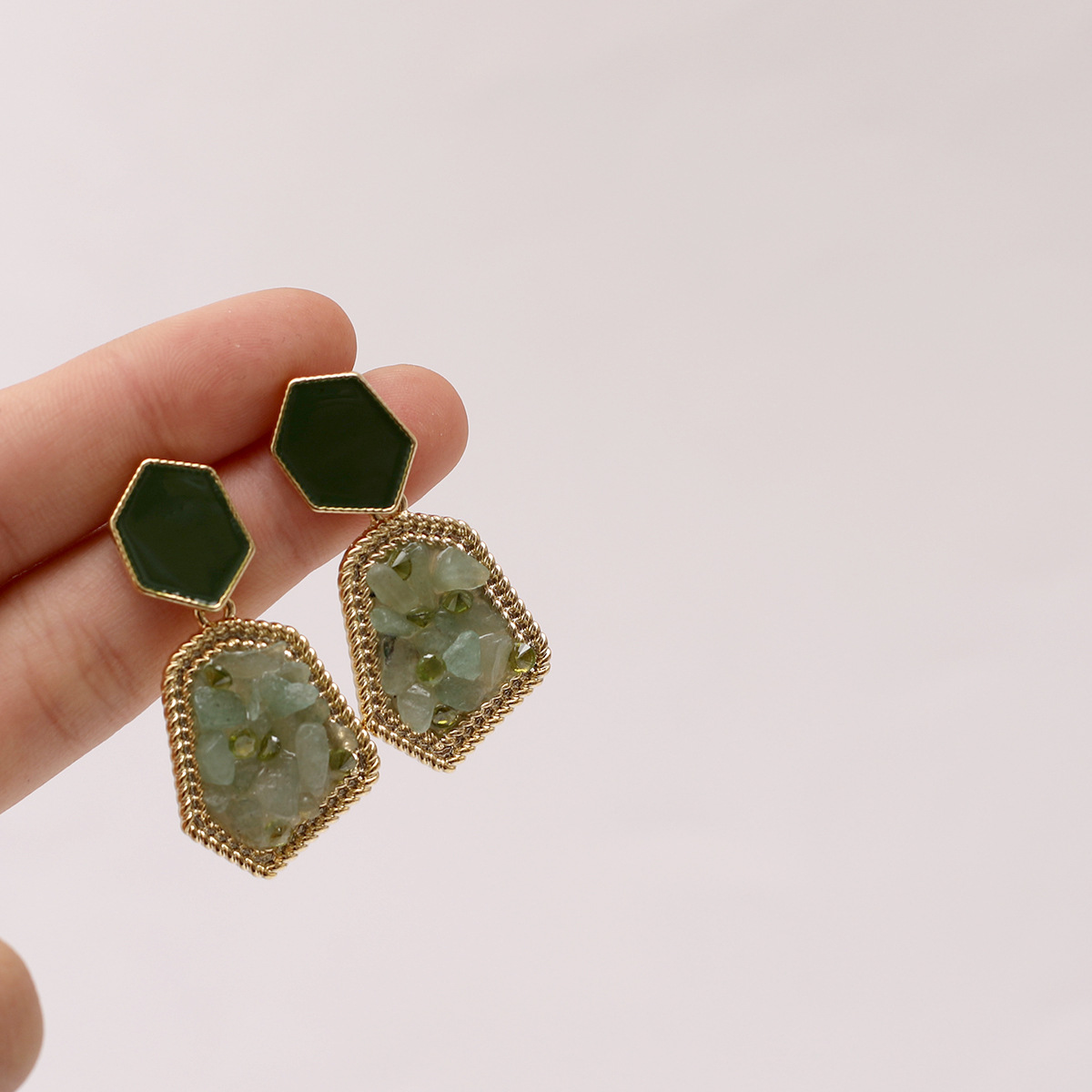 Product information:Material: Electroplating alloyStyle: Korean style/Korean styleStyle: Women'sModeling: GeometryTreatment process: electroplatingInlay material: retro green, light grayPacking information:Alloy earrings x1