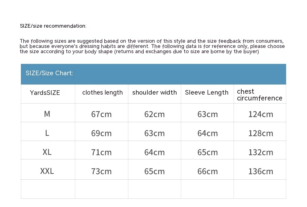 1. Asian sizes are 1 to 2 sizes smaller than European and American people. Choose the larger size if your size between two sizes. Please allow 2-3cm differences due to manual measurement. 2. Please check the size chart carefully before you buy the item, if you don't know how to choose size, please contact our customer service. 3.As you know, the different computers display colors differently, the color of the actual item may vary slightly from the following images.