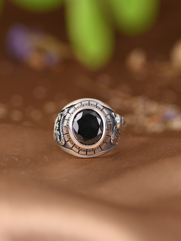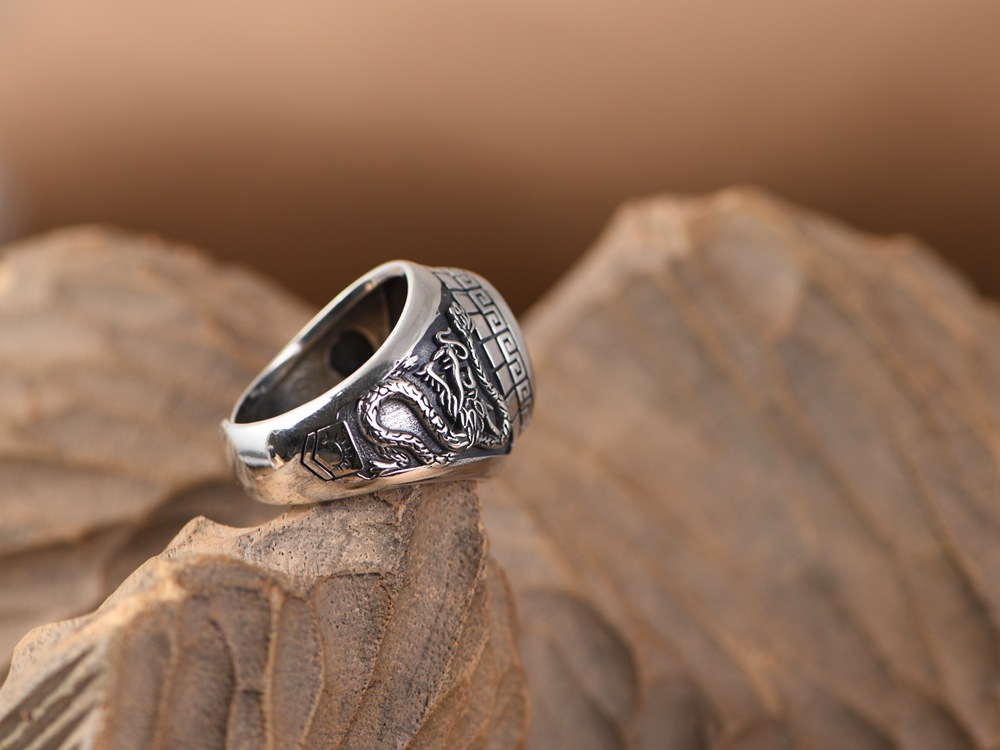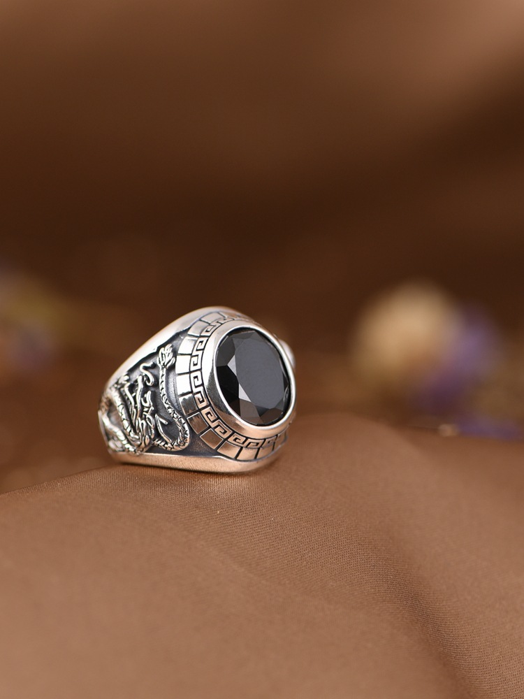Product information:Type: open mouth Processing Technology: Old Color: Ring Applicable people: men Size: adjustable opening Style: Geometry Material: Silver Modeling: animal/Zodiac Popular elements: Dragon and Tiger Style: Personality