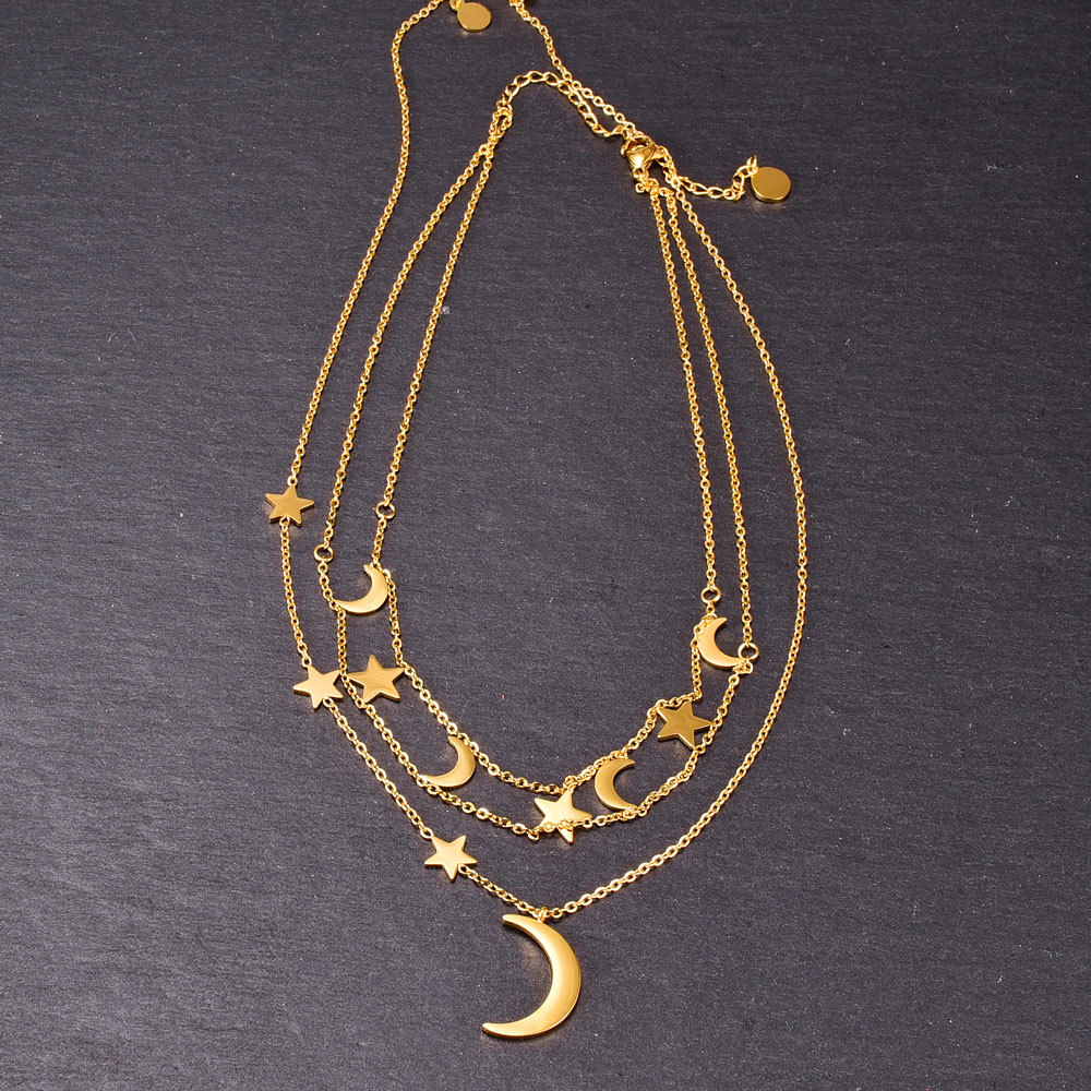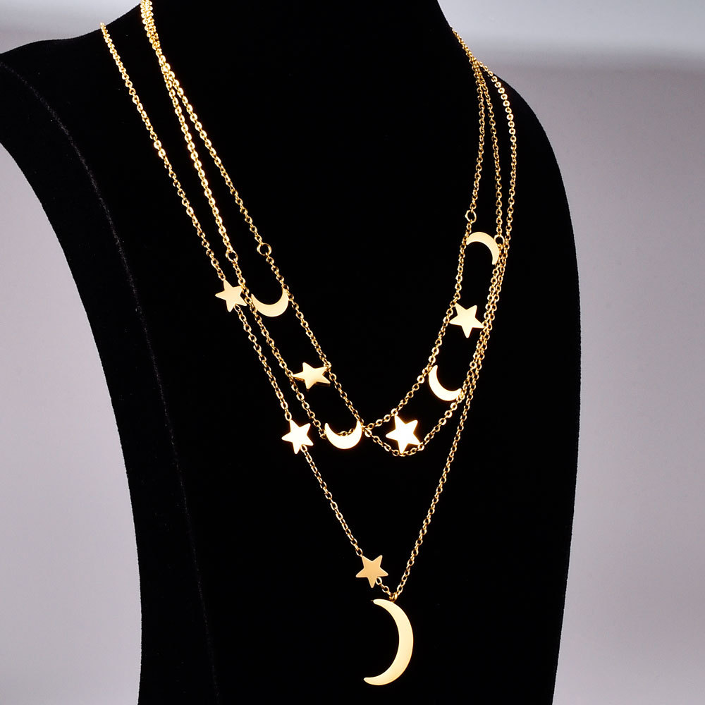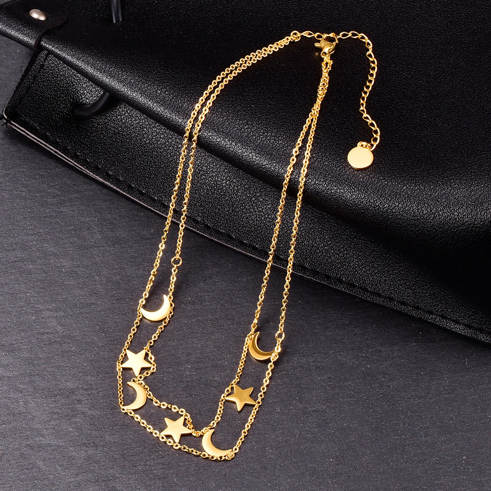 Product information:Material: titanium steelTreatment process: gold-inlaidType: NecklaceChain style: water wave chainColor: gold-double chain, gold-only double neck on topStyle