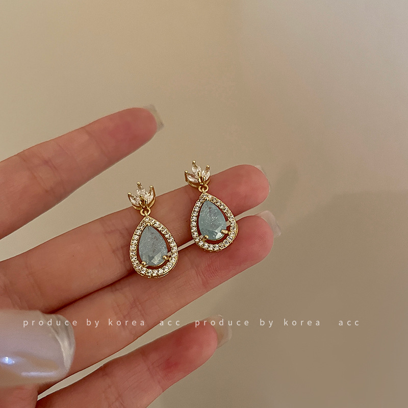 Product information:Material: AlloyStyle: Retro, Korean style/Korean styleStyle: Women'sShape: drop shapeTreatment process: zirconColor: Silver Needle. light bluePackage:Gold-plated earrings X1 pair