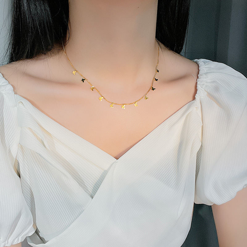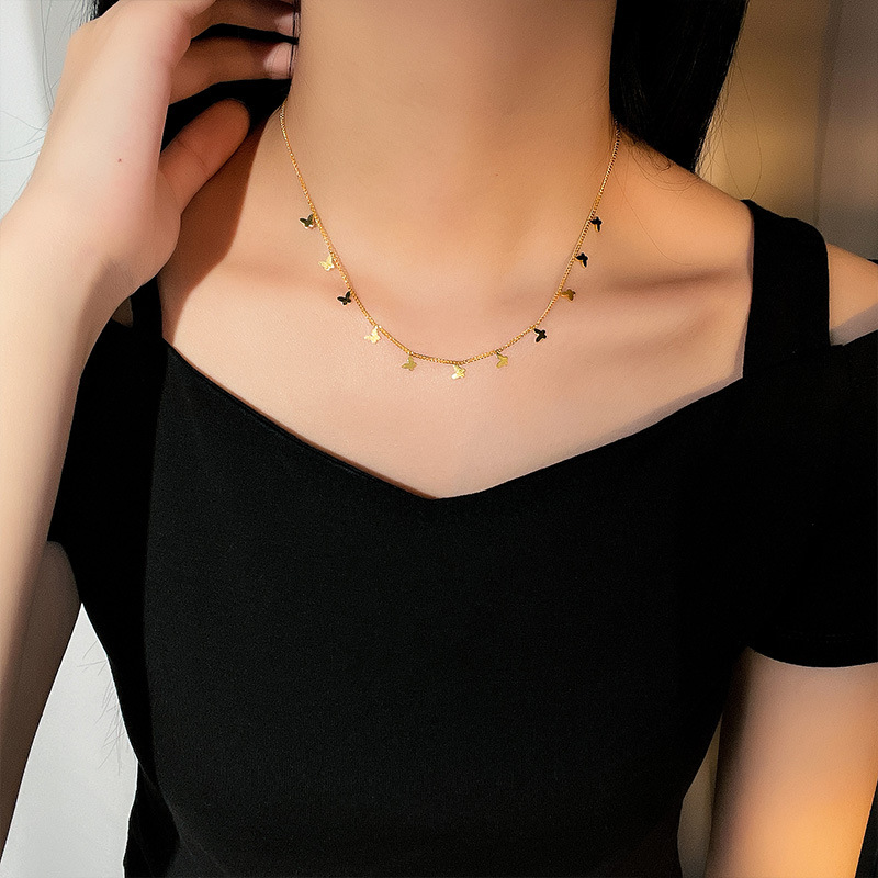 Color: Golden-11 butterfly necklace, golden-11 four-leaf clover necklace