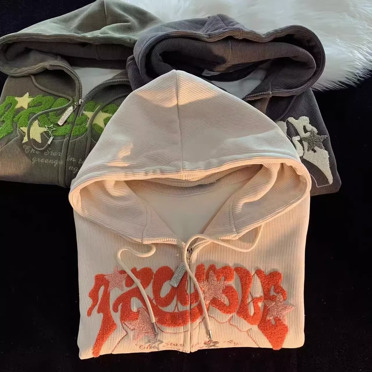 Product information:Product Category: JacketStyle: Street chicPattern: Color combinationMain fabric: PolyesterColor: Gray, green, apricotSizes :M,L,XL,2XL
