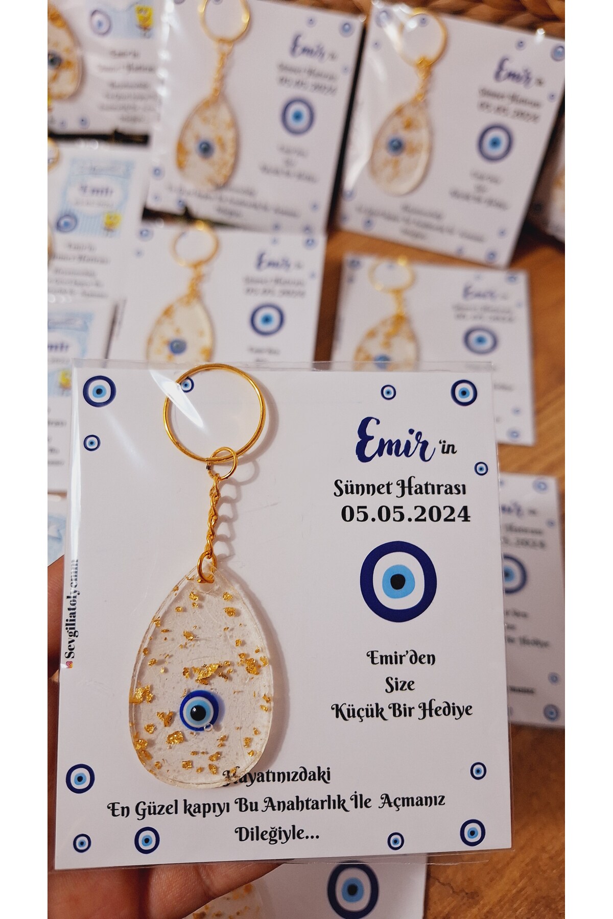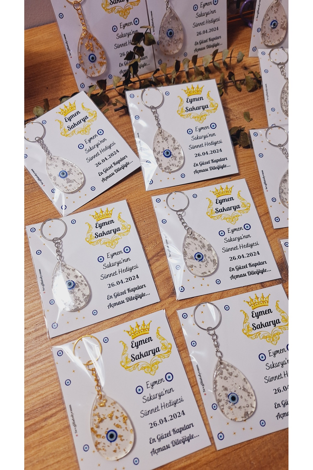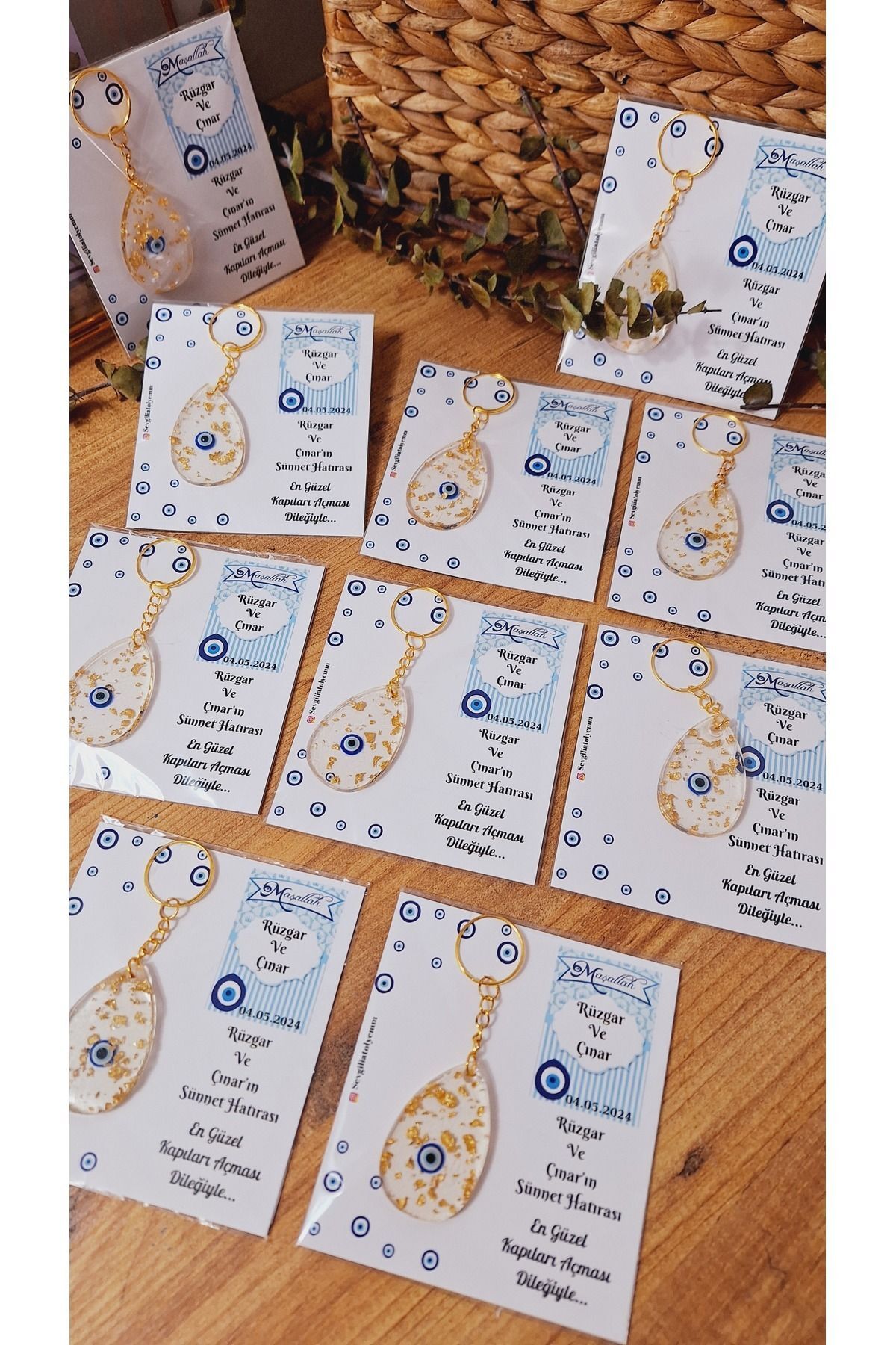 Evil Eye Beaded Drop Keychain with Card Circumcision Wedding Baby 10 Pieces