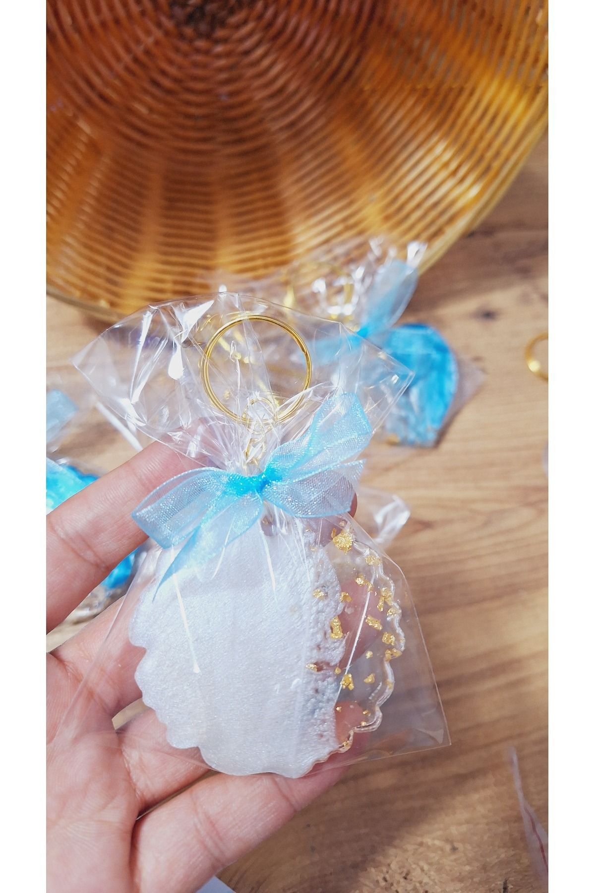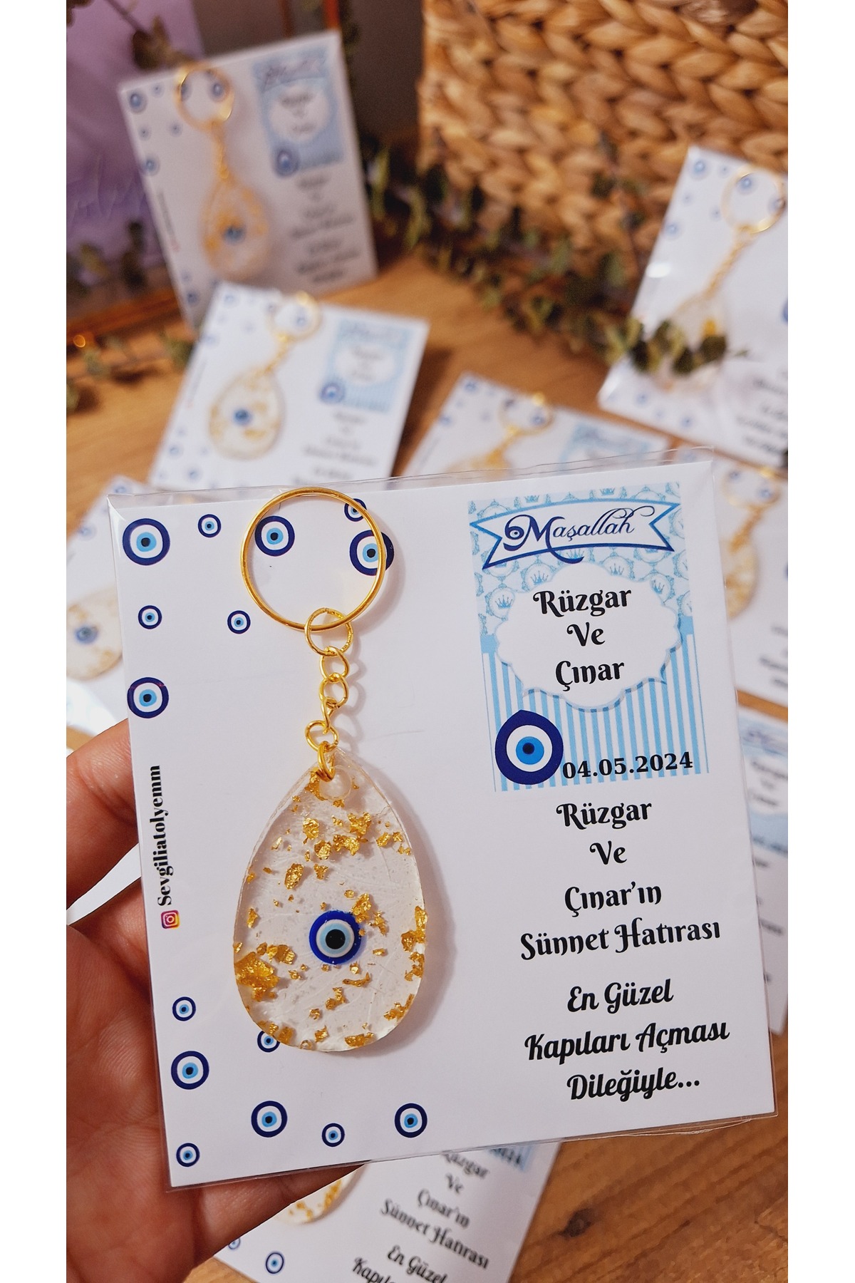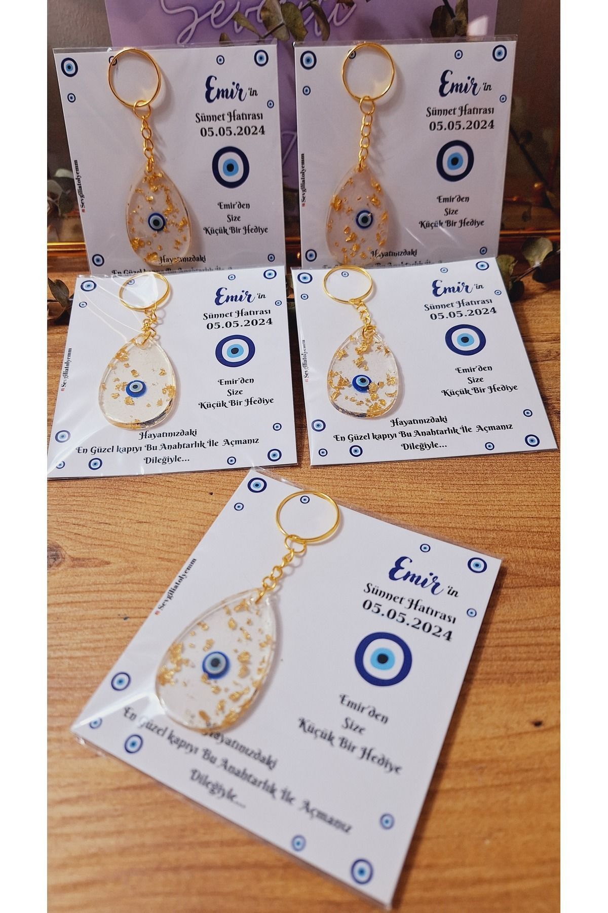 Evil Eye Beaded Drop Keychain with Card Circumcision Wedding Baby 10 Pieces