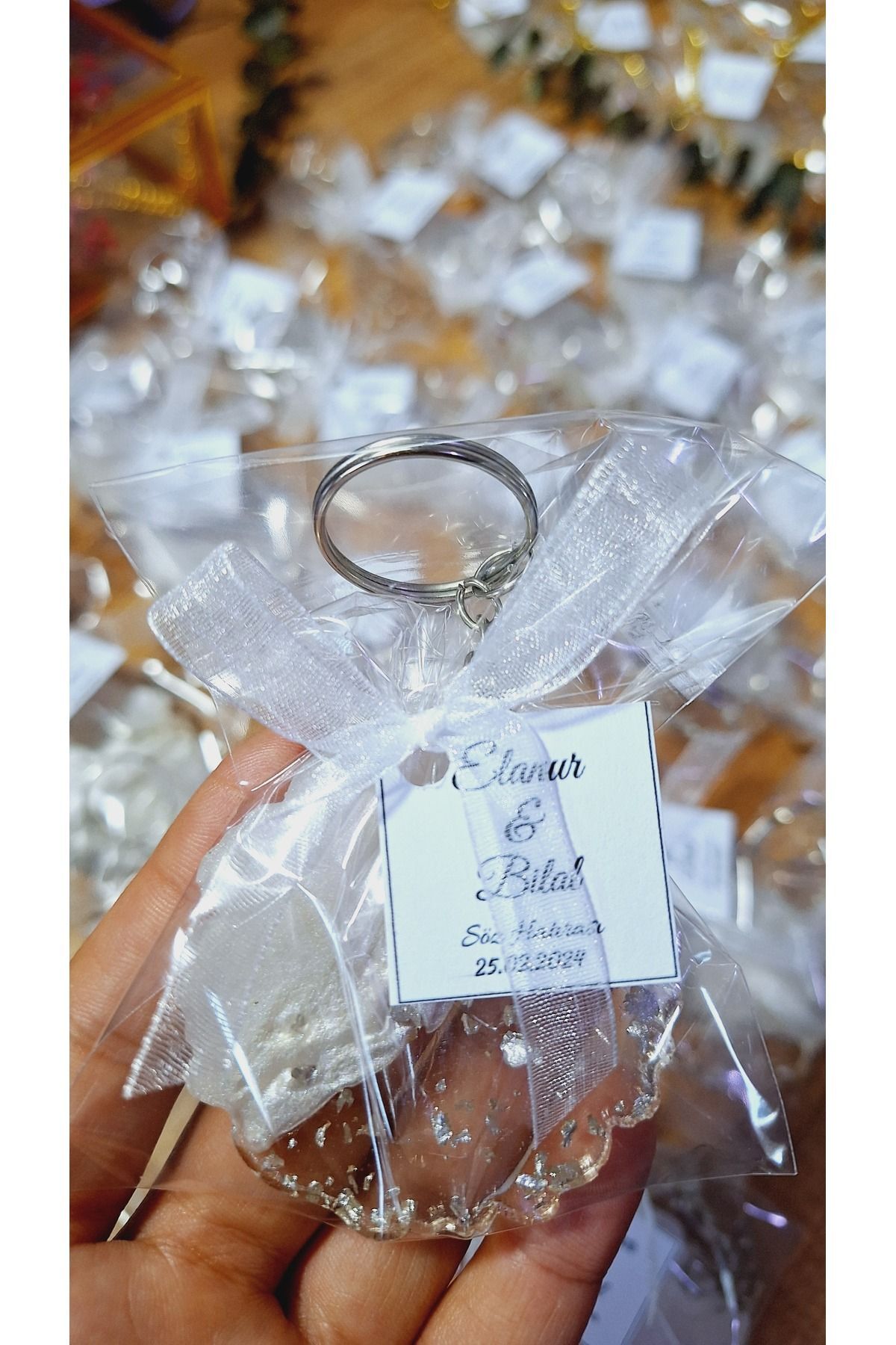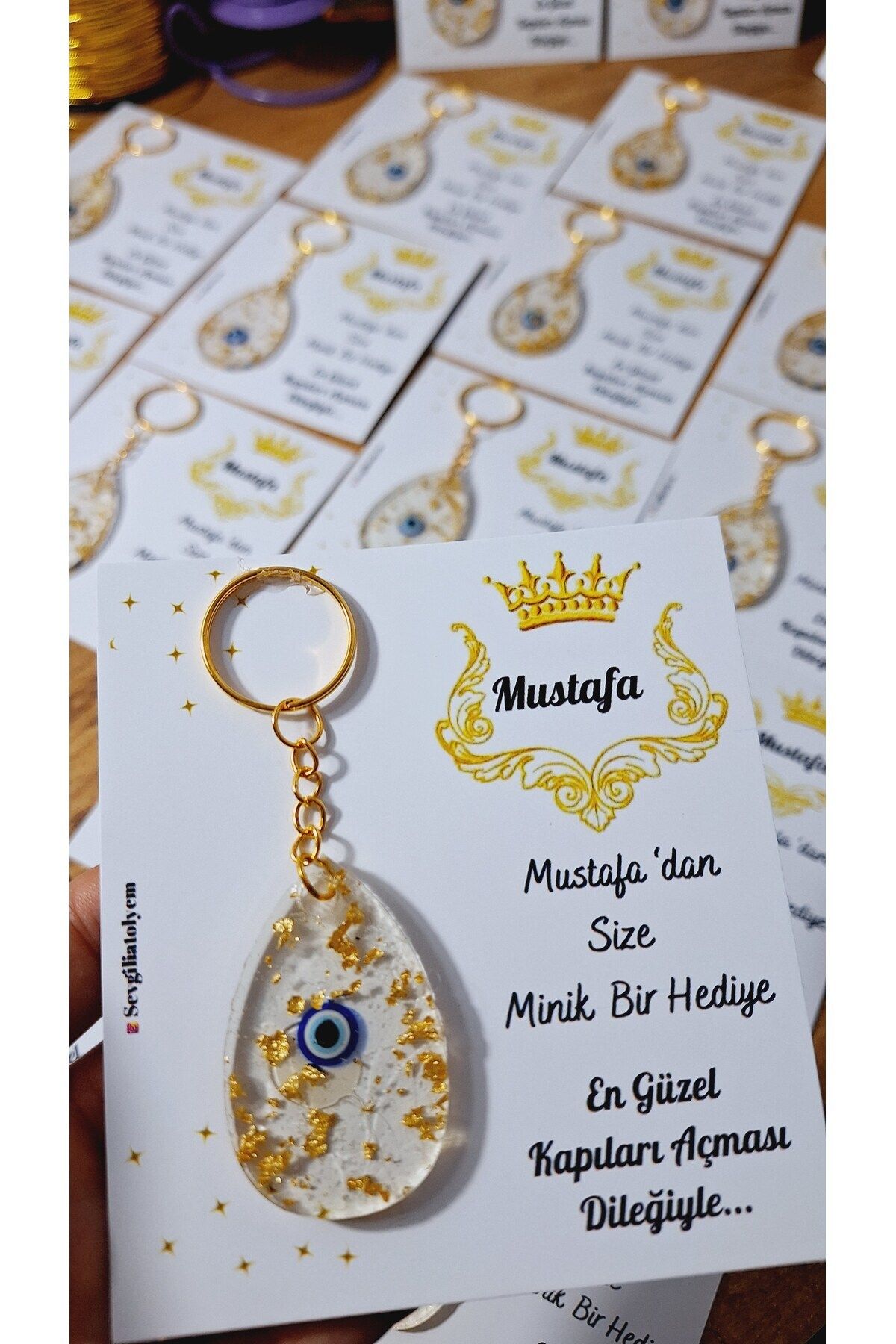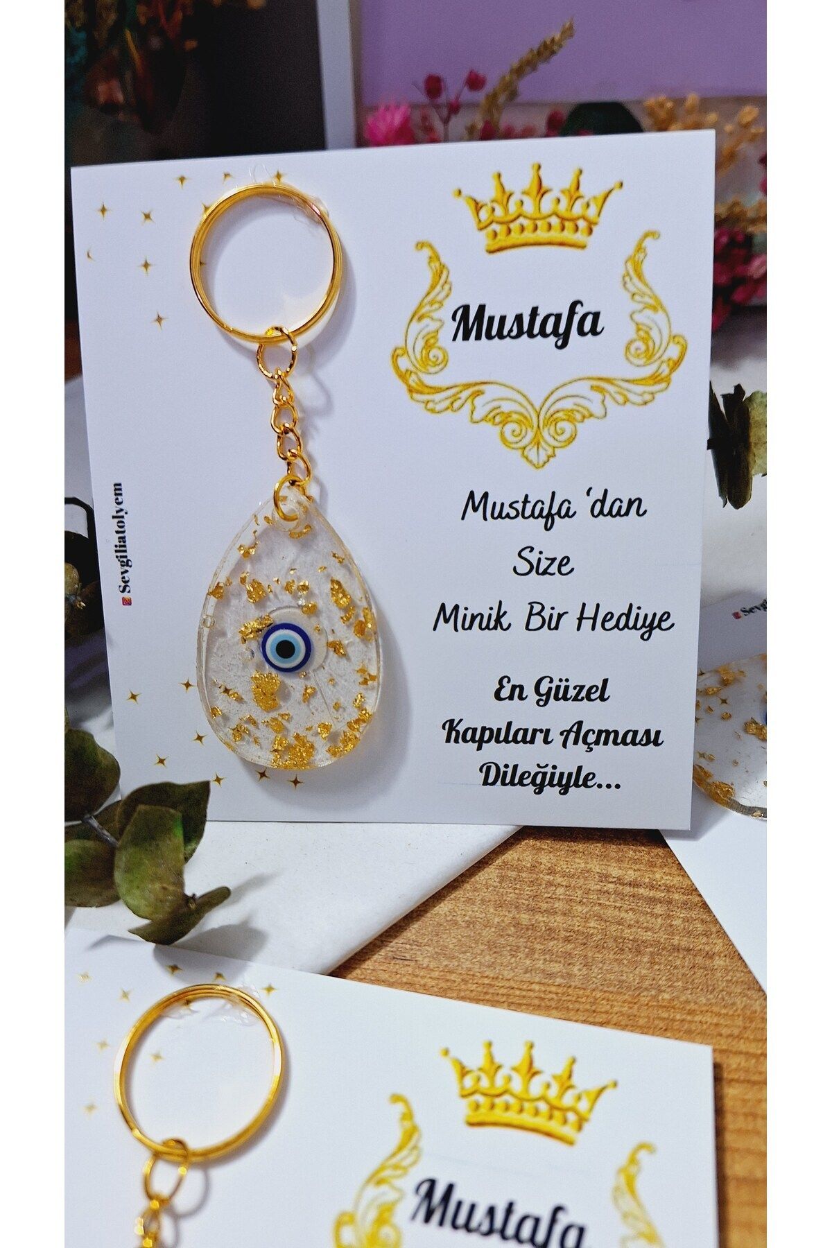 Card size 9*11 Our card keychains are sent in a gelatin package. After placing the order, you must send us 1-The order number along with the order number 2-The number of the card model 3-The text and name to be written on the card.