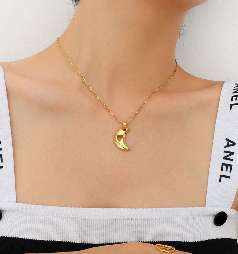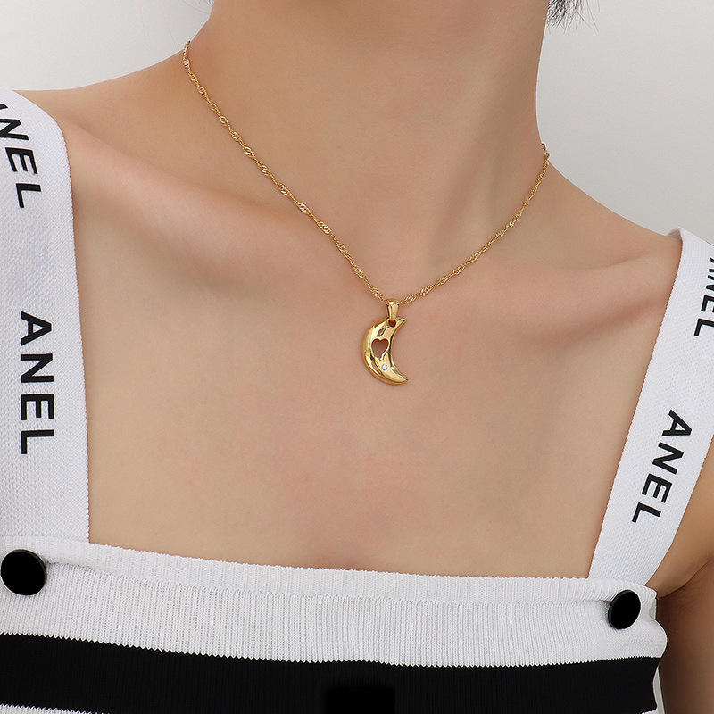 Product information:Color: P004-gold necklace 40 5cmApplicable people: womenPendant material: zirconMaterial: titanium steelShape: GeometricPopular element: MoonStyle: Simple