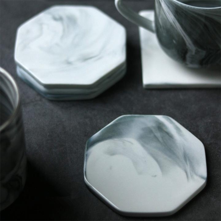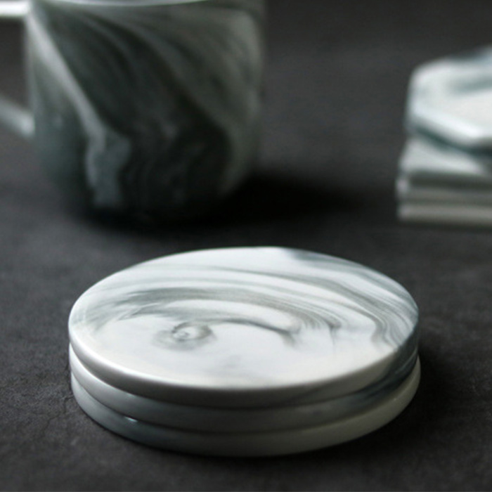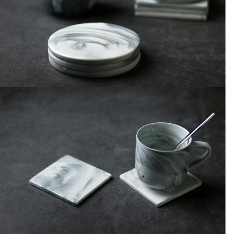 The dreamy whirls of grey and white marble patterns are elegant, these heat-resistant and waterproof ceramic coasters have square, octagonal and circular shapes
