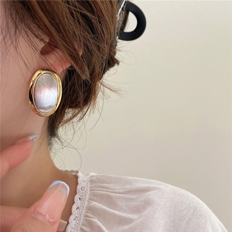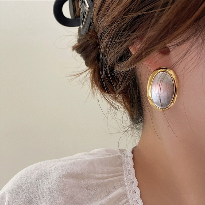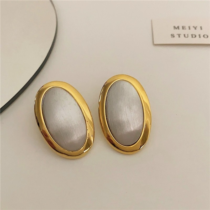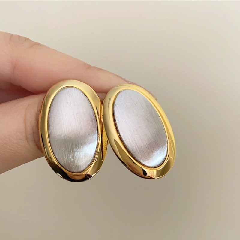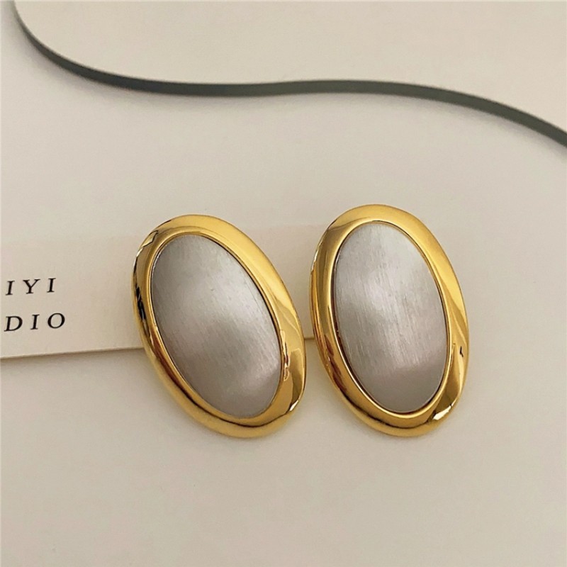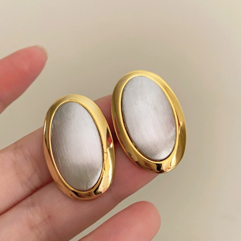 High-grade Cold Style Metal Contrast Color Brushed Oval Ear Studs