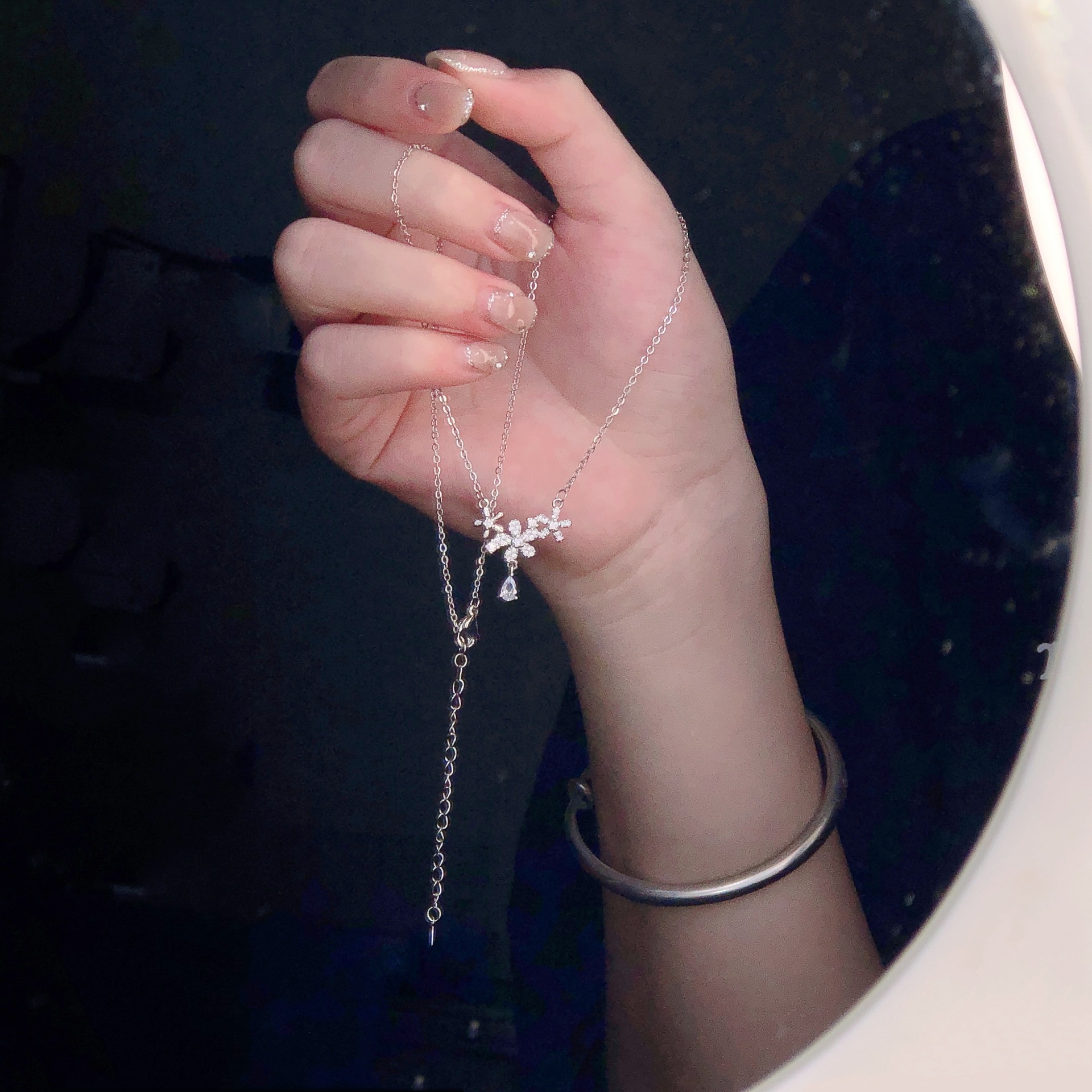 Flower Water Drop Necklace Female Design Sense Niche