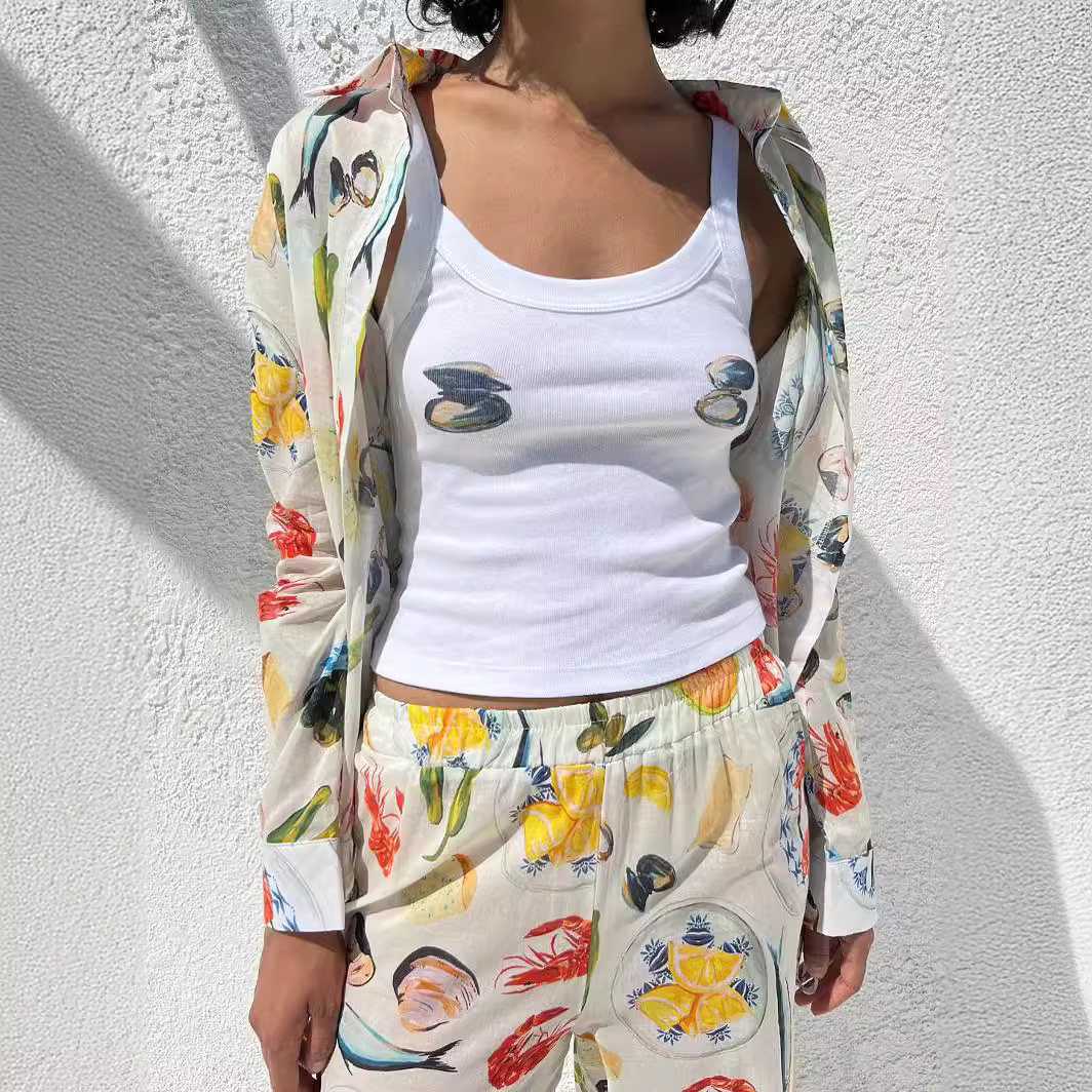 Product information: Pattern: Fruit Fabric name: Cotton Colors: Tomatoes, cherries, kiwifruit, shells, crayfish, delicacies, fish and shrimp, fruits Size: S, M, L Main fabric composition content: 90% (inclusive) -95% (exclusive)