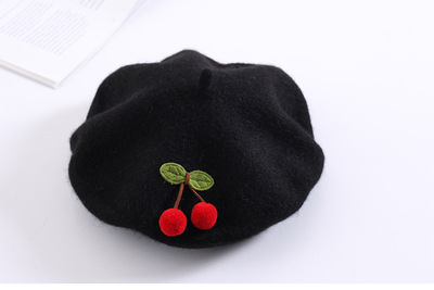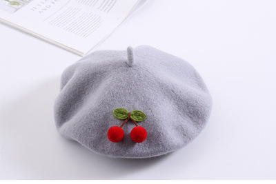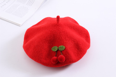 Color: gray cherry beret, red cherry beret, black cherry beret, beige cherry beret, burgundy cherry beret, khaki cherry beret, pink cherry beret