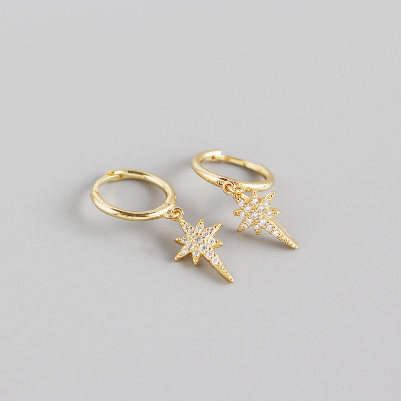 S925 Sterling Silver INS Light Luxury Eight-pointed Star Diamond Earrings