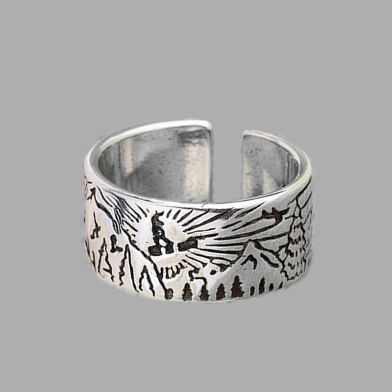Material : CopperStyle: VintageShape: mountain and riverColor: Vintage Silver JZ01084Size: Opening is adjustable