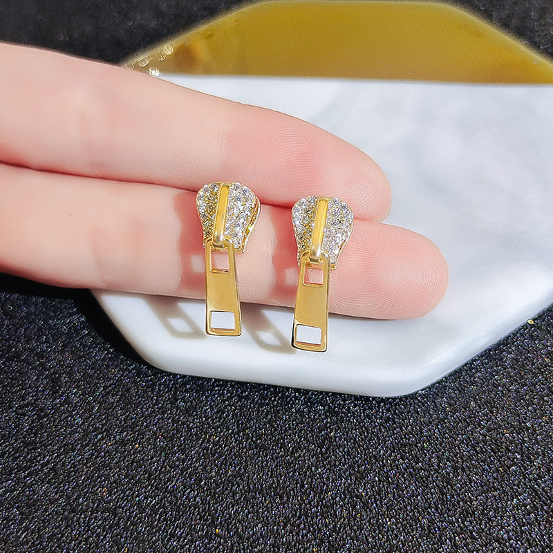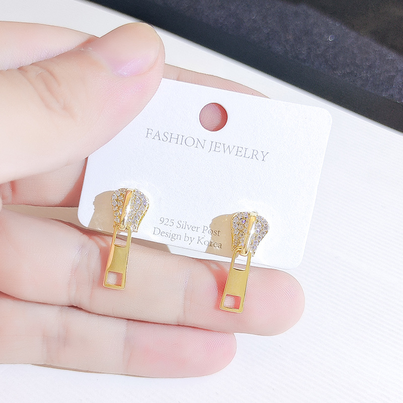 Product information:Style: light luxuryMaterial: gold-platedTreatment process: electroplatingType: EarringsStyle: UnisexStyle: ZipperColor: 925 ear pinsPacking:Gold-plated earrings X1