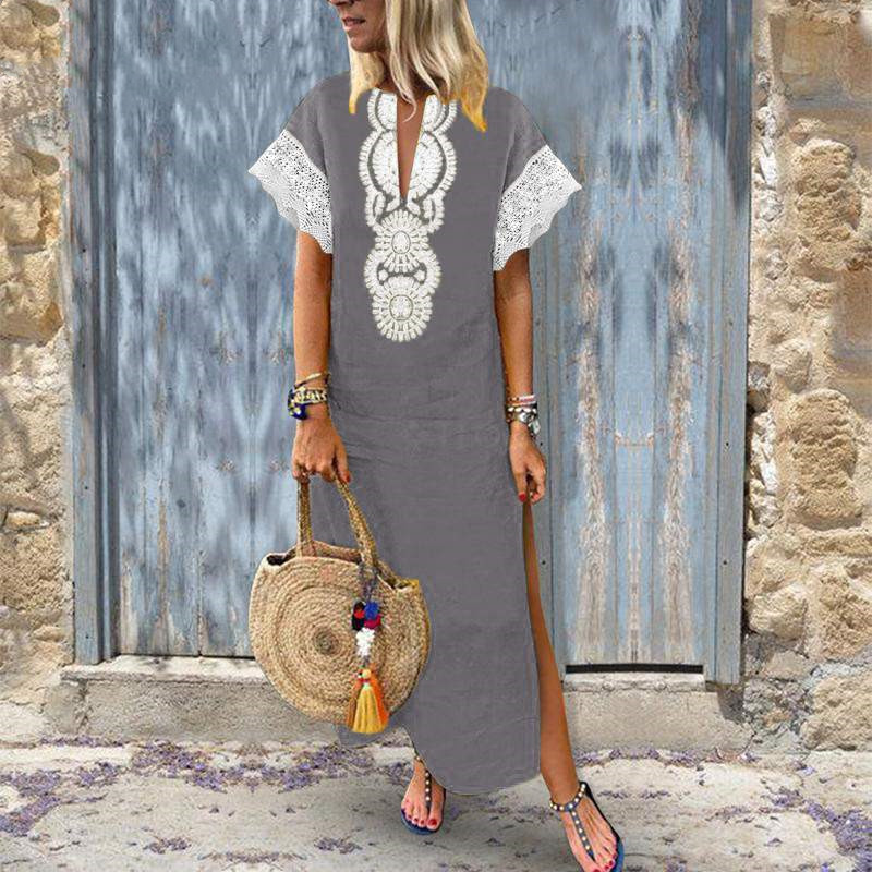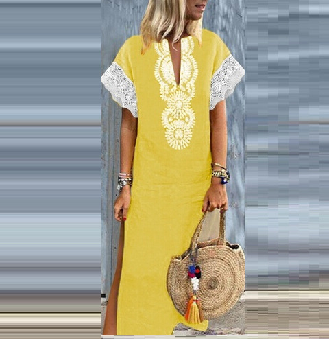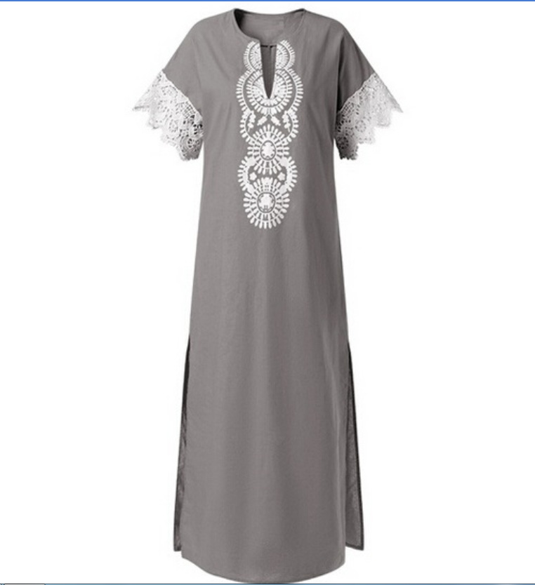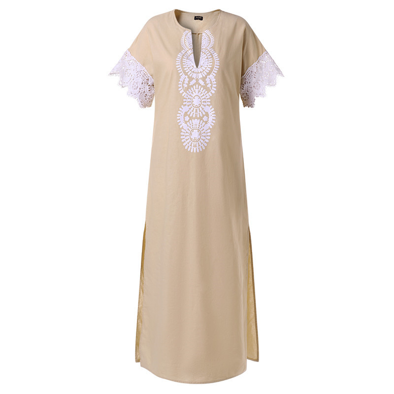 Skirt length: A long skirt Neck type: V neck Sleeve: Petal sleeve Long sleeves: Short sleeves Waist: loose waist Lapel: A pullover Main fabric composition: Polyvinyl alcohol fiber (Vinylon) Content of main fabric composition: 71-80%